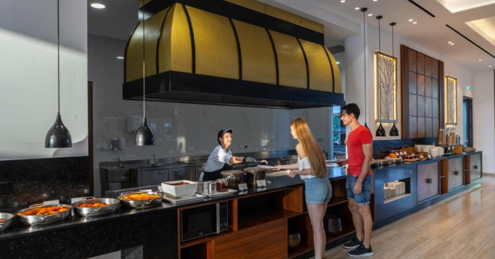 Experiență culinară: Un restaurant potrivit pentru familii servește preparate din bucătăria internațională cu opțiuni vegetariene, vegane, fără gluten și fără lactate. Micul dejun este foarte apreciat de oaspeți.
