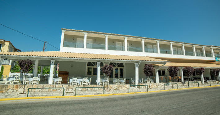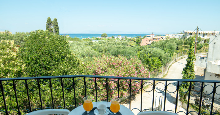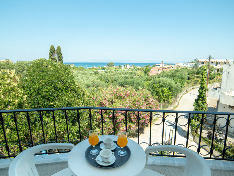 Built with elements of traditional Corfiot architecture, it combines elegancy with comfort. Its main characteristics are the large verandas surrounding the 2-storey building and the wide green and tastefully arranged gardens. The hotel comprises a reception area and a lobby with sitting area, satellite TV, as well as 24-hour reception and check-out service. This club resort consists of a total of 62 rooms. Further facilities include air conditioning, a hotel safe, currency exchange, wireless Internet access, a laundry service and a car park and bicycle hire (for a fee). Guests are invited to wine and dine in the café, bar and restaurant.