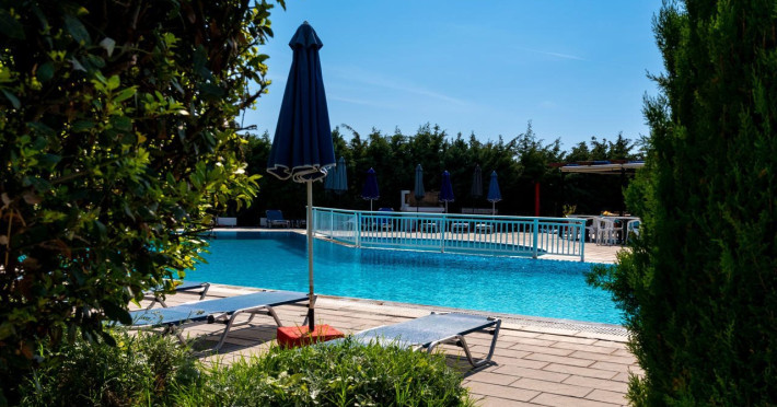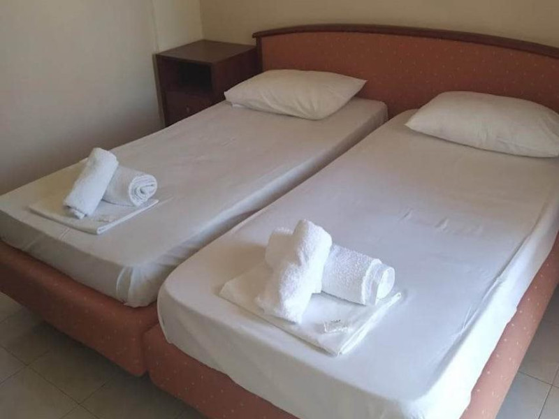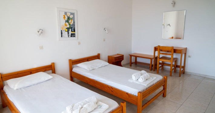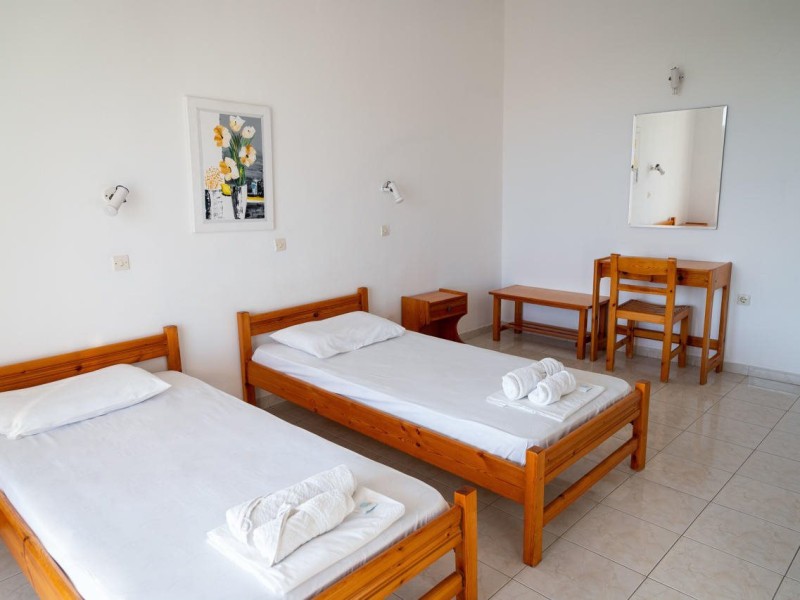 Facilities and services include Wi-Fi, safe box reception (extra charge), parking, restaurant, bar, swimming pool, children's pool, and children's playground.Rooms are equipped with air conditioning(extra charge), balcony/terrace, and fridge.Cleaning/housekeeping:- Cleaning 3 times per week- Change of linen 3 times per week- Change of towels 3 times per weekAddress: Theologos Rhodes 85106 Greece