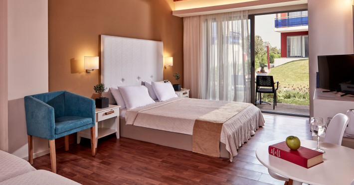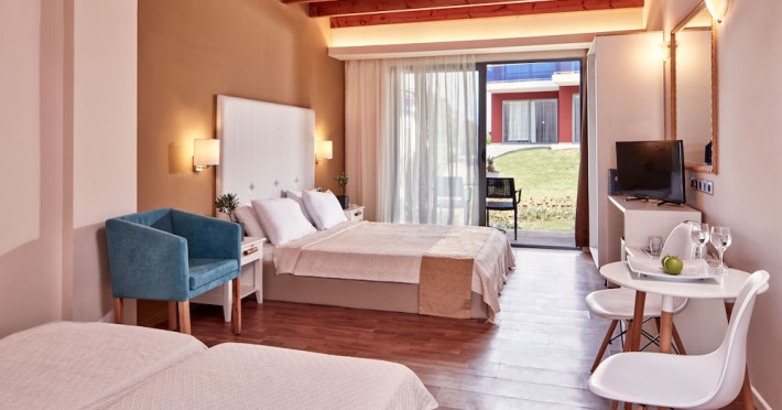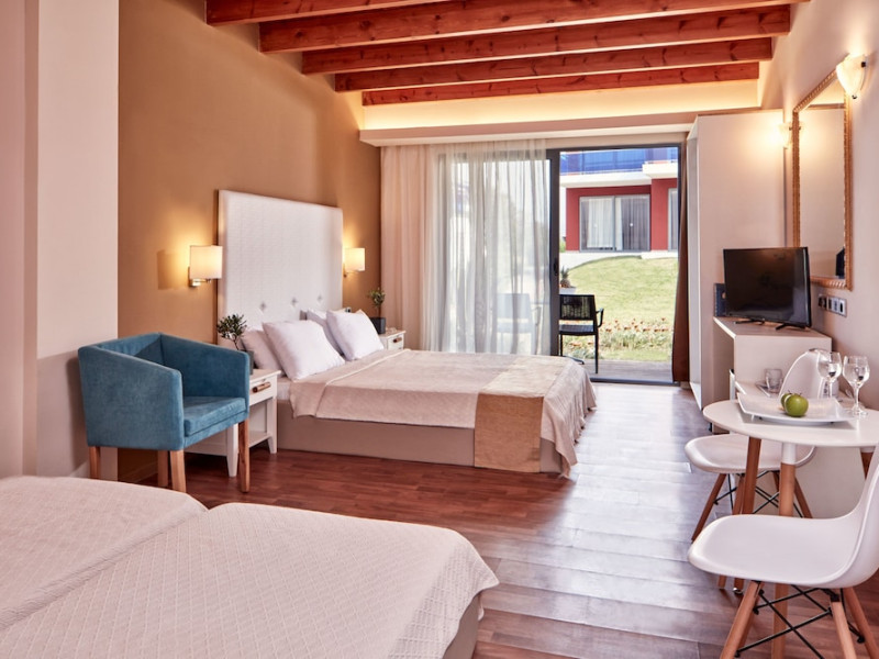Located on the Fanes coast of Rhodes, next to the beach and surrounded by lush gardens with Aegean Sea views, All Senses Nautica Blue Exclusive Resort & Spa - All Inclusive offers an all-inclusive experience. The resort features 305 air-conditioned rooms with balconies or terraces, private bathrooms with hair dryers and toiletries, satellite TV, and minibars. Guests can enjoy multiple dining options with restaurants and bars. Recreational amenities include multiple swimming pools, an outdoor tennis court, a sauna, mini-golf, mini-soccer, and beach volleyball. The spa offers massages, body treatments, and facials. Additional amenities include complimentary WiFi, concierge service, a business center, express check-in/out, a meeting room, free self-parking, luggage storage, and safety deposit boxes. An open-air amphitheater and summer cinema are also available. Guests can take advantage of the airport shuttle service, laundry service, and on-site convenience stores. A complimentary breakfast is served daily. Rhodes International Airport (RHO) is approximately 13 km away. Guests have access to a private beach and fitness amenities. The All Senses Nautica Blue Exclusive Resort and Spa is a Beach Resort, Child Friendly, Eco Friendly, Family Style, Honeymoon, Leisure, Resort, Tourist hotel. The nightlife/restaurants are easily accessible by taxi or bus from the hotel.