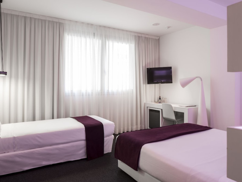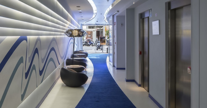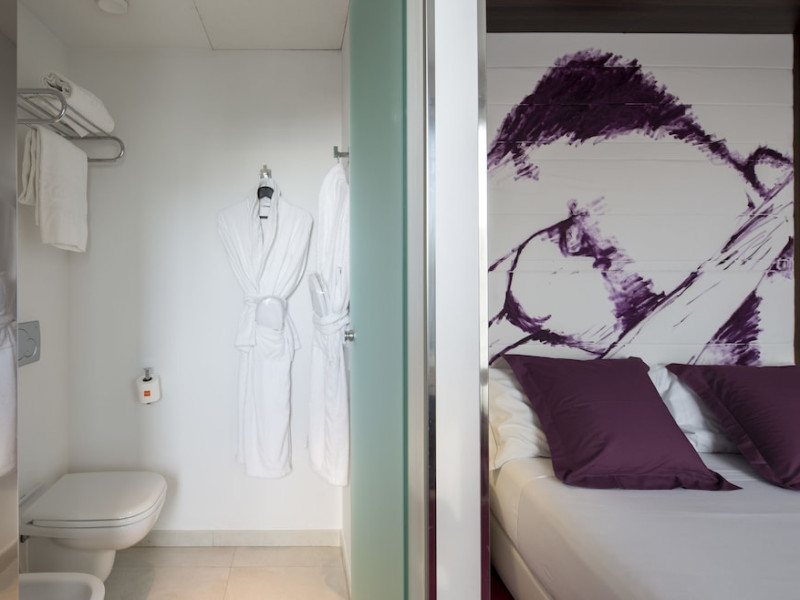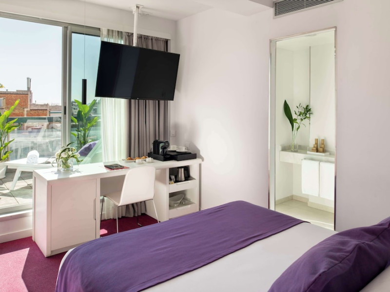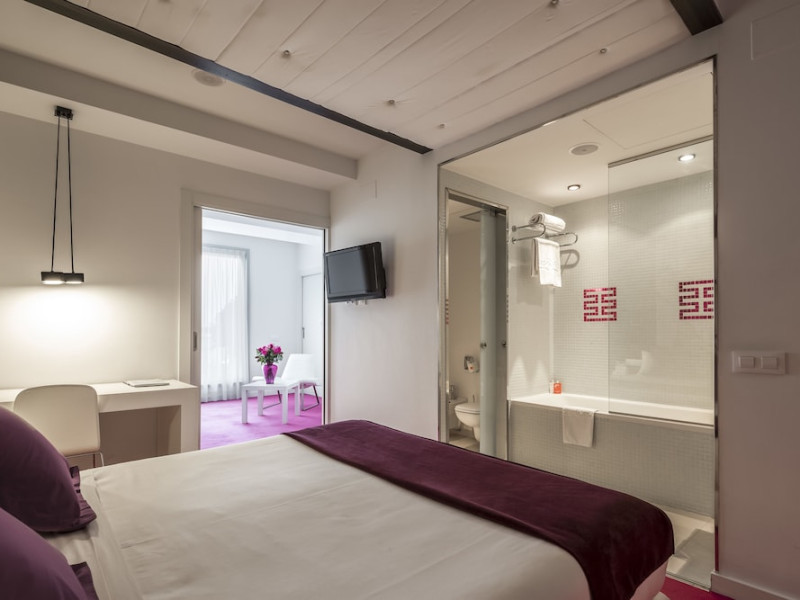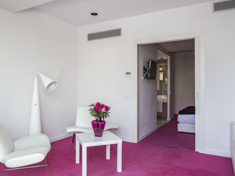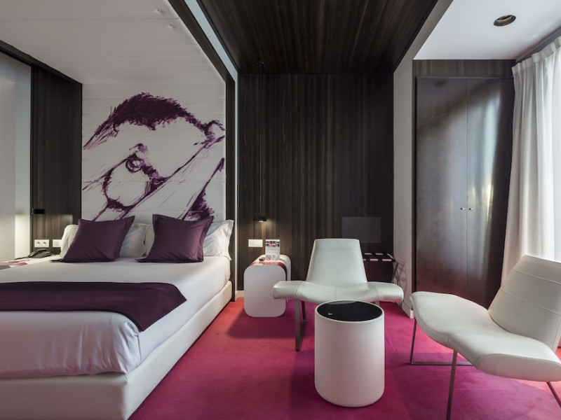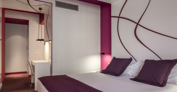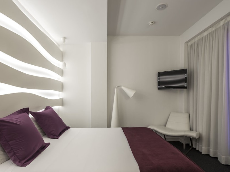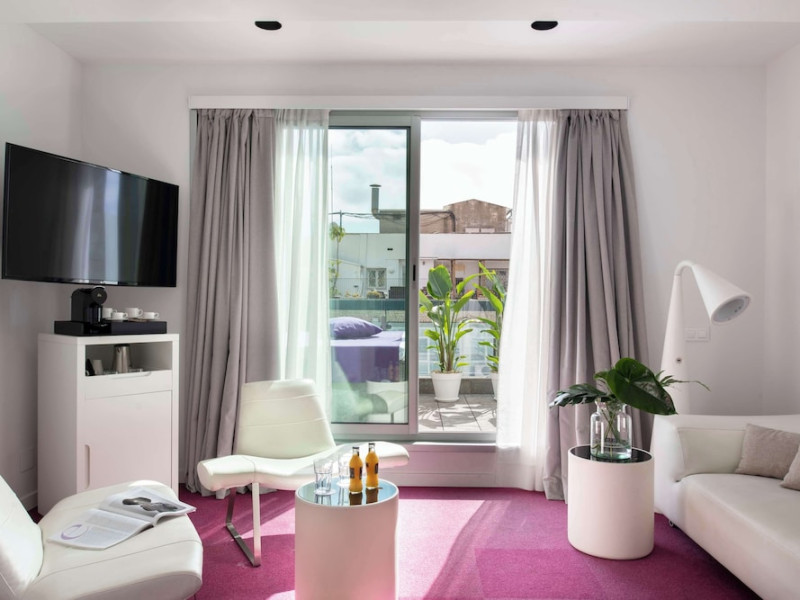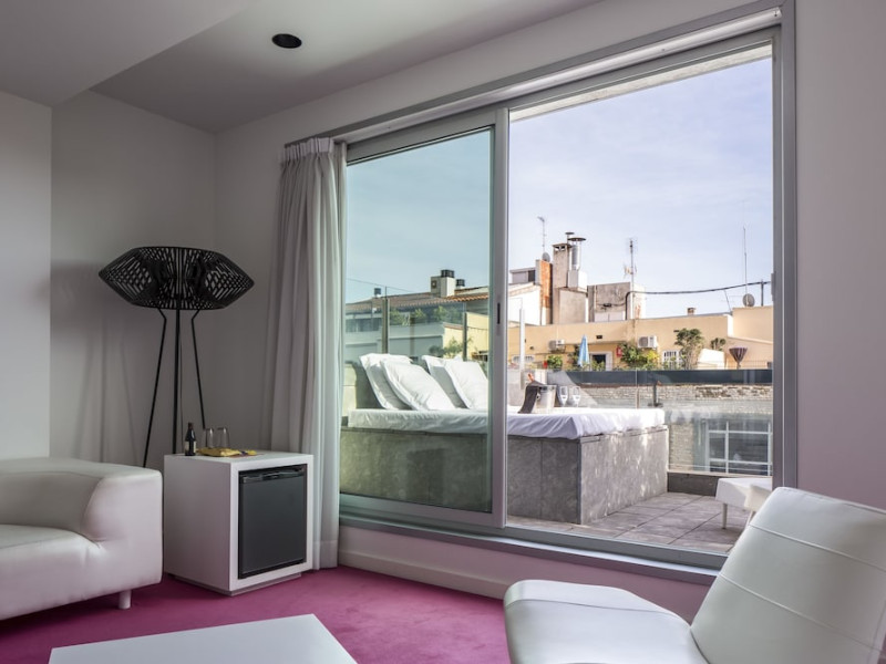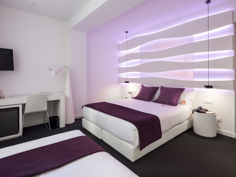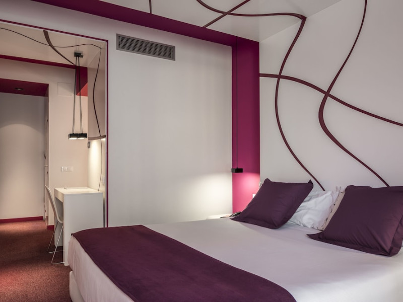 The 3-star Allegro Barcelona is a boutique hotel with a futuristic design, located in Barcelona's Eixample district, near Rambla de Catalunya and a 3-minute walk from Paseo de Gracia. Designed by architect Nadal Moneo and interior designer Tomás Alia, it offers 56 modern rooms, perfect for couples, friends, or families. Amenities include complimentary Wi-Fi, a concierge service, a daily buffet breakfast (fee applies, 7 AM to 10:30 AM), dry cleaning/laundry services, a 24-hour front desk, and multilingual staff. Limited on-site parking is available. The hotel's central location provides easy access to attractions such as Casa Milà, Casa Batlló, and other restaurants and leisure facilities. Rooms feature minibars, LCD televisions, private bathrooms with complimentary toiletries and hair dryers, phones, safes, and desks. Note: The outdoor pool is closed Tuesday-Thursday. The nearest airport is Barcelona El Prat Airport (BCN), 15.4 km away. The Allegro Barcelona is a Tourist hotel. The nightlife/restaurants are located in the hotel.