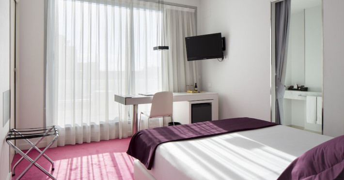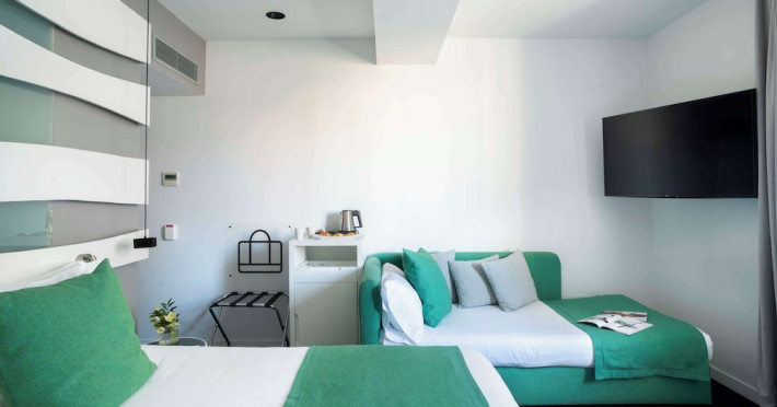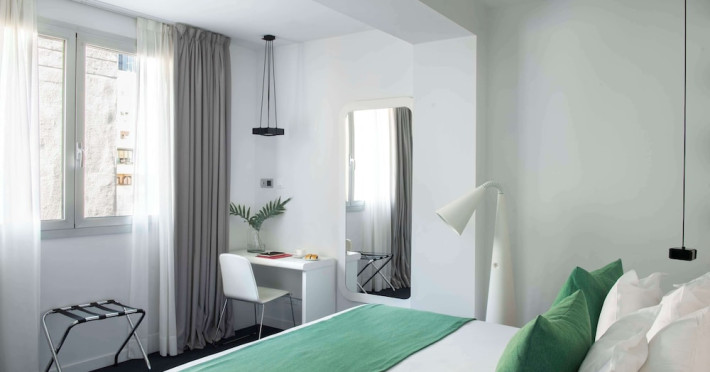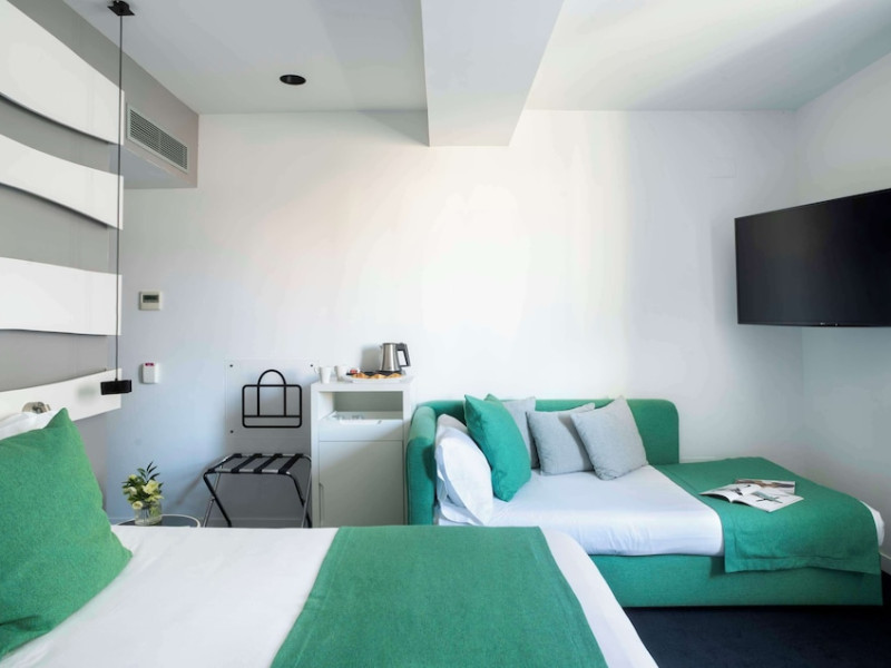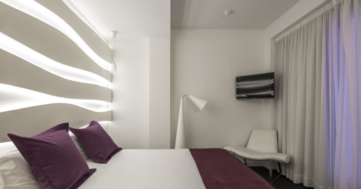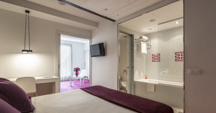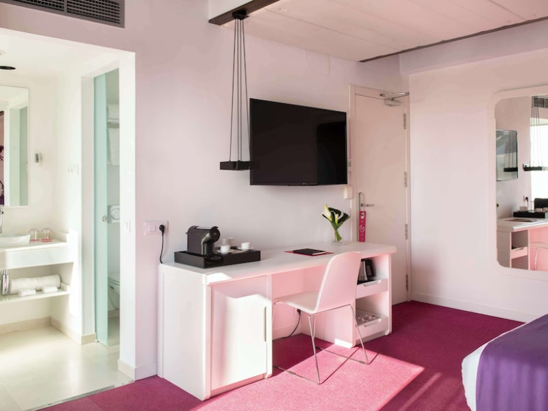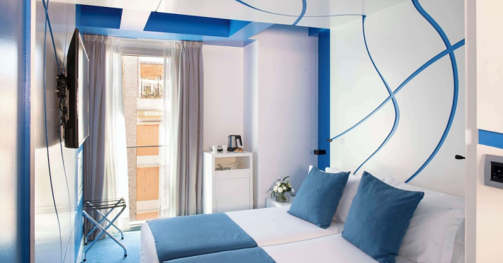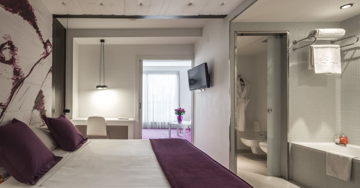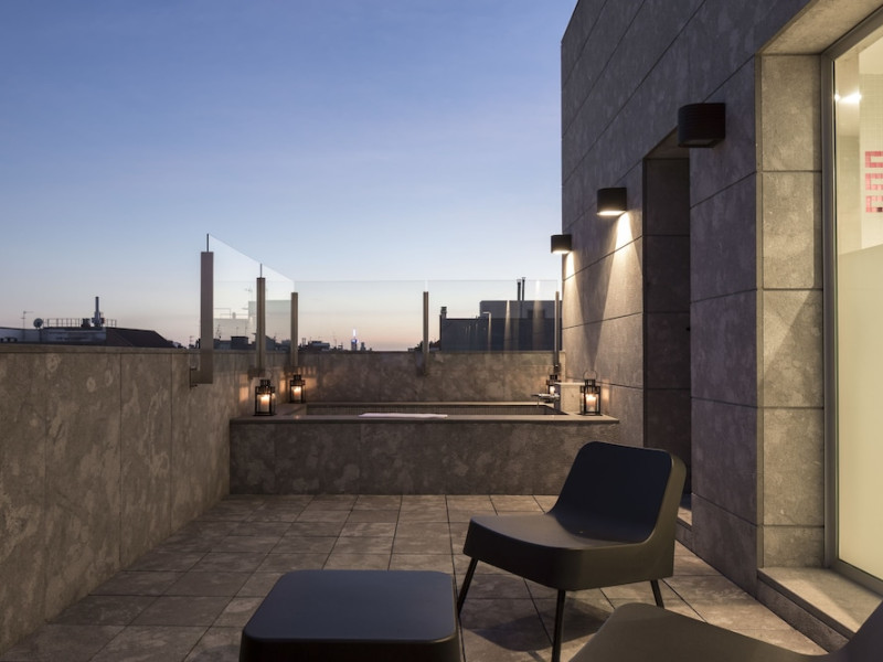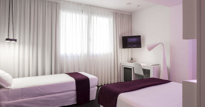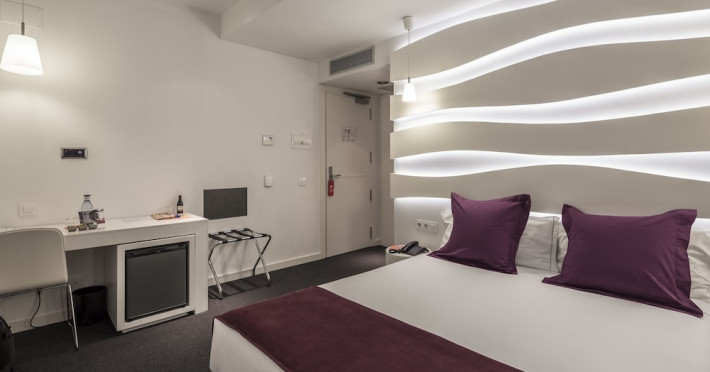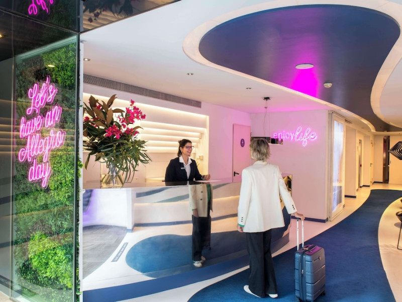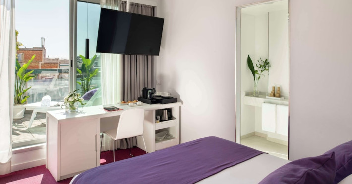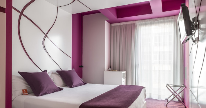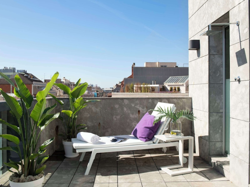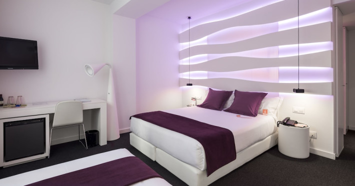 The 3-star Allegro Barcelona is a boutique hotel with a futuristic design, located in Barcelona's Eixample district, near Rambla de Catalunya and a 3-minute walk from Paseo de Gracia. Designed by architect Nadal Moneo and interior designer Tomás Alia, it offers 56 modern rooms, perfect for couples, friends, or families. Amenities include complimentary Wi-Fi, a concierge service, a daily buffet breakfast (fee applies, 7 AM to 10:30 AM), dry cleaning/laundry services, a 24-hour front desk, and multilingual staff. Limited on-site parking is available. The hotel's central location provides easy access to attractions such as Casa Milà, Casa Batlló, and other restaurants and leisure facilities. Rooms feature minibars, LCD televisions, private bathrooms with complimentary toiletries and hair dryers, phones, safes, and desks. Note: The outdoor pool is closed Tuesday-Thursday. The nearest airport is Barcelona El Prat Airport (BCN), 15.4 km away. The Allegro Barcelona is a Tourist hotel. The nightlife/restaurants are located in the hotel.