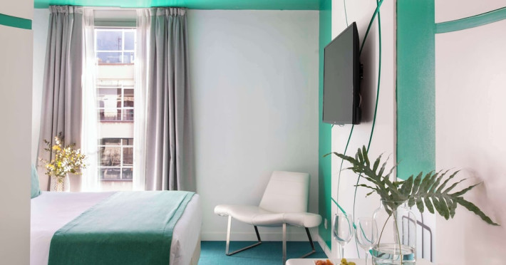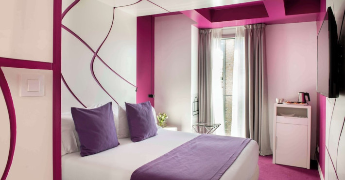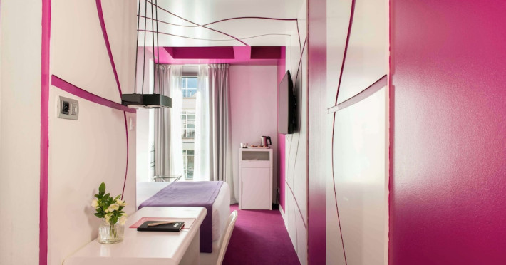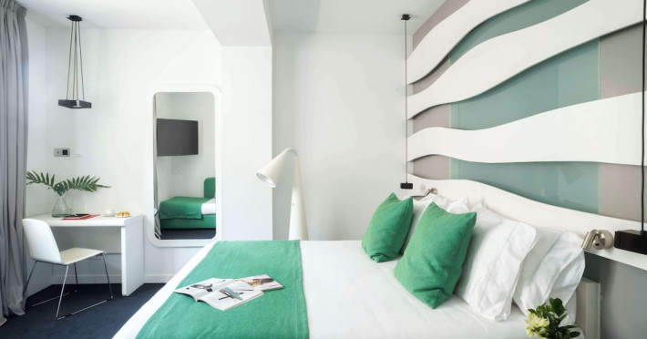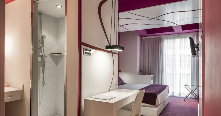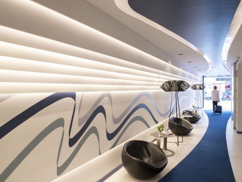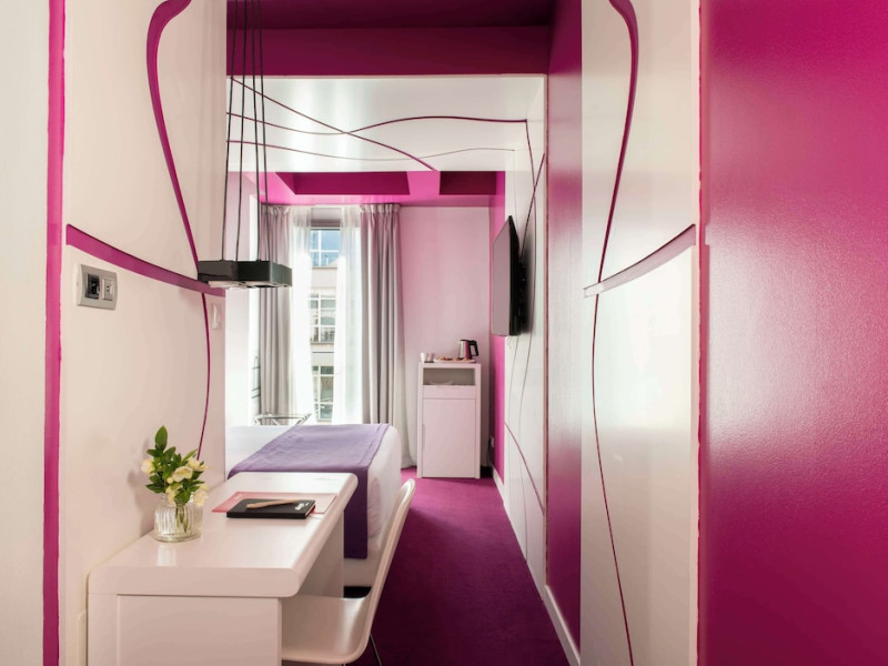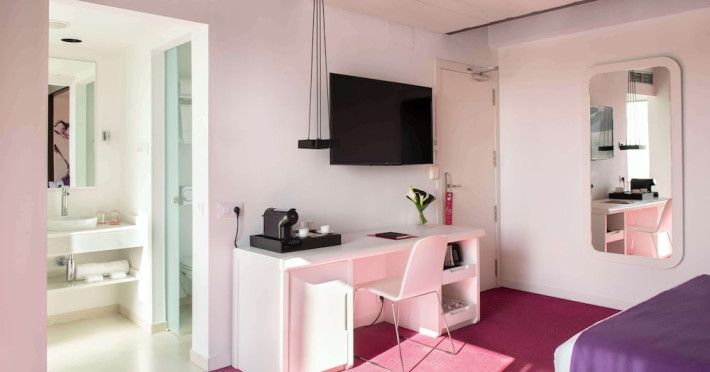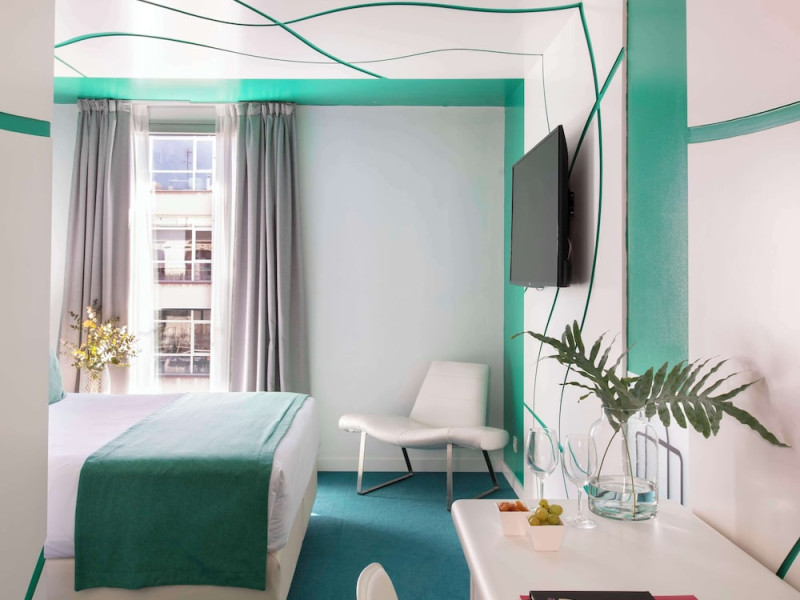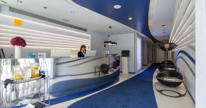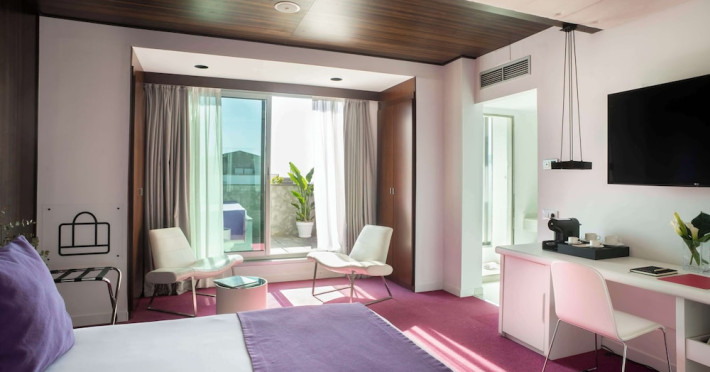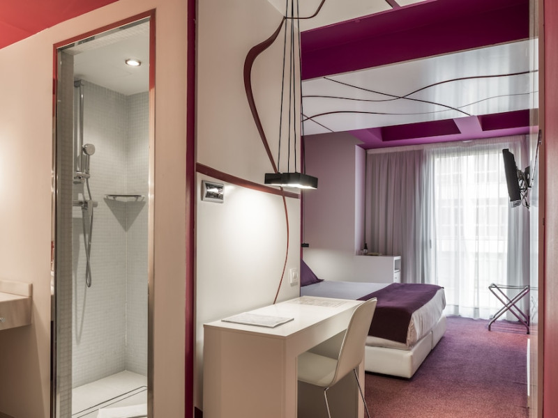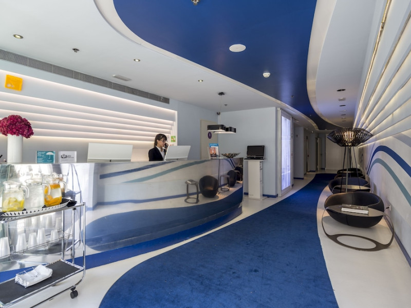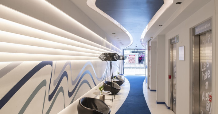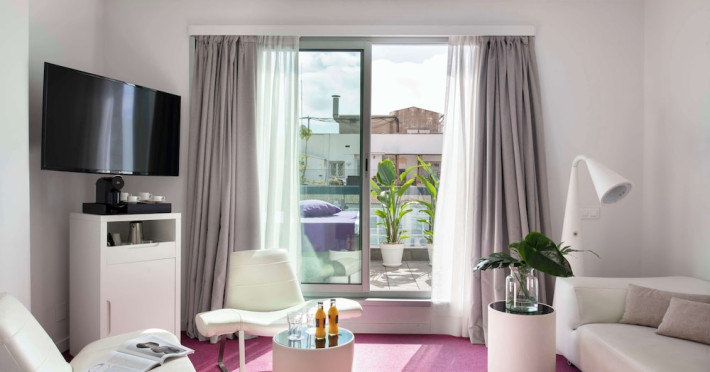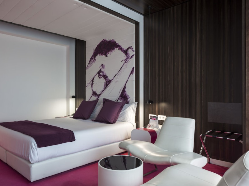 The 3-star Allegro Barcelona is a boutique hotel with a futuristic design, located in Barcelona's Eixample district, near Rambla de Catalunya and a 3-minute walk from Paseo de Gracia. Designed by architect Nadal Moneo and interior designer Tomás Alia, it offers 56 modern rooms, perfect for couples, friends, or families. Amenities include complimentary Wi-Fi, a concierge service, a daily buffet breakfast (fee applies, 7 AM to 10:30 AM), dry cleaning/laundry services, a 24-hour front desk, and multilingual staff. Limited on-site parking is available. The hotel's central location provides easy access to attractions such as Casa Milà, Casa Batlló, and other restaurants and leisure facilities. Rooms feature minibars, LCD televisions, private bathrooms with complimentary toiletries and hair dryers, phones, safes, and desks. Note: The outdoor pool is closed Tuesday-Thursday. The nearest airport is Barcelona El Prat Airport (BCN), 15.4 km away. The Allegro Barcelona is a Tourist hotel. The nightlife/restaurants are located in the hotel.