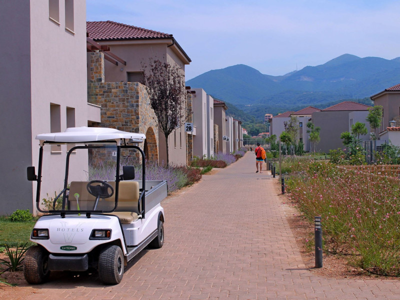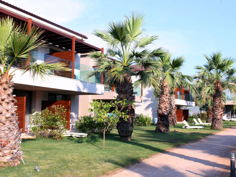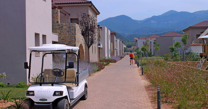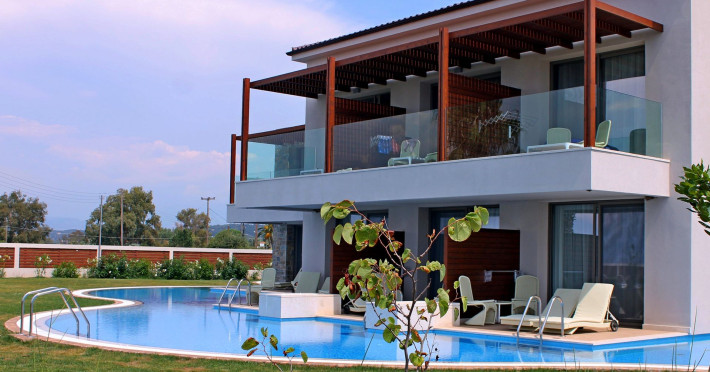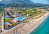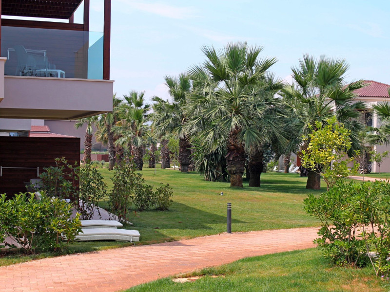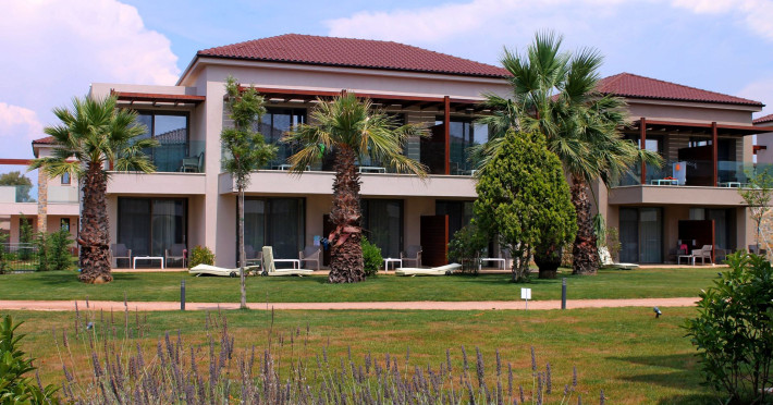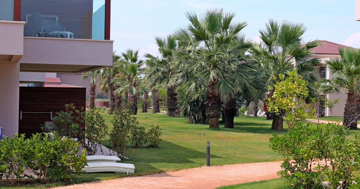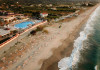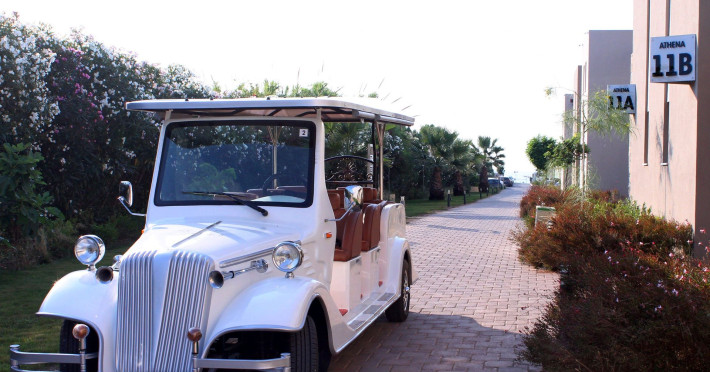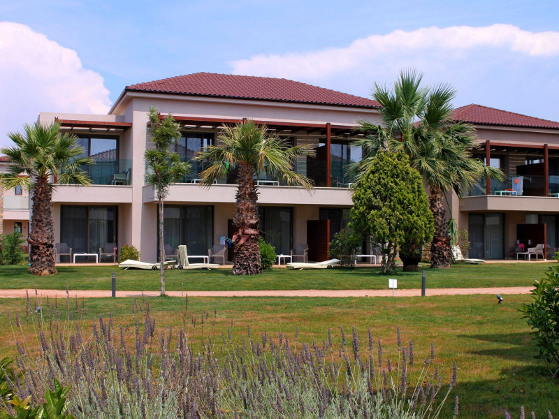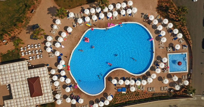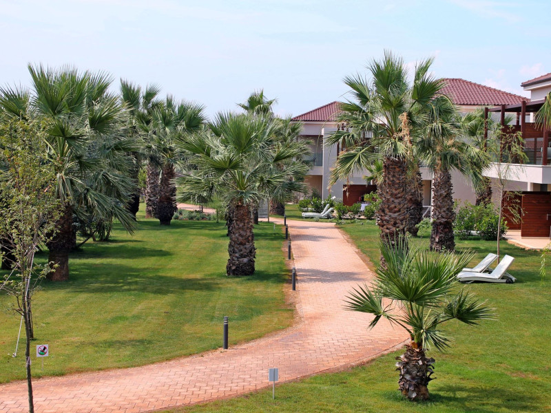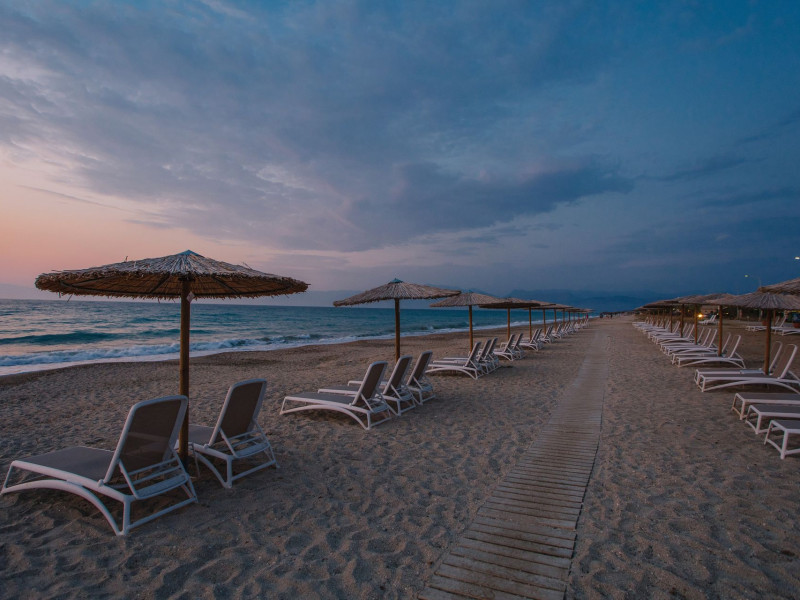Almyros Beach resort & Spa its a newly build(2019) beach front, 5* hotel which includes 180 rooms spreaded in 12 buildings named after the 12 Greek Gods. It is a contemporary Family friendly hotel providing BB, HB and All Inclusive mealboards, builded in a unique location in front of Almyros sandy beach on the north coast with the most amazing sunset in Corfu island. Its Located 42 klms from Kapodistrias International airport and only 2 klms from Acharavi, a town where you may found shops, bars, restaurants & Supermarkets. In the main building, on the ground floor is our Reception and Lobby area with the Lobby Bar and main restaurant that Breakfast, lunch & dinner will be served. In the -1 floor you will find our Spa & Fitness facilties in an area of 300 sqm's, 2 Kids miniclubs, 2 shops and a multifunction room equipped with Audiovisual equipment sufficient to host special events like weddings, business meetings, for up to 100 people. Dine in our Roof top Ambrosia Ala carte Restaurant or enjoy the sunset with your favorite cocktail in our Nectar Roof top bar . Relax on the Pool area and enjoy your swim in the 600 sqm's swimming pool while having your favorite dring from the pool bar. 3 water slides, a childrens Pool and a playground is availiable for our little friends and our Animantion team will keep them entartained with several outooor and indoor activities to the Kids clubs. 2 Tennis courts, a 5x5 football and a basketball/volleyball courts are avaliable and a daily animation program with Yoga/Pilates/karaoke/ Dance cources will keep you entartained and fit