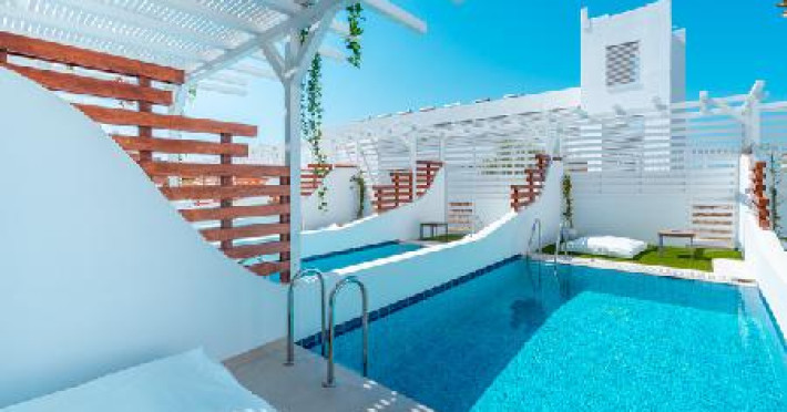 The fully renovated (2019) Aloe Plus Hotel is an adults-only haven featuring 48 deluxe double rooms, nine of which boast private pools. Guests arriving at the hotel will appreciate the ample private parking for cars and motorcycles. A warm welcome awaits at reception, where our attentive staff is ready to assist with any questions as guests enjoy a complimentary welcome drink. The hotel's inviting central area features a well-maintained garden and swimming pool, surrounded by the main restaurant and a convenient poolside snack bar. The fully renovated (2019) Aloe Plus Hotel is an adults-only haven featuring 48 deluxe double rooms, nine of which boast private pools. Guests arriving at the hotel will appreciate the ample private parking for cars and motorcycles. A warm welcome awaits at reception, where our attentive staff is ready to assist with any questions as guests enjoy a complimentary welcome drink. The hotel's inviting central area features a well-maintained garden and swimming pool, surrounded by the main restaurant and a convenient poolside snack bar. Check In: 07:30:00 Check Out: 12:00:00