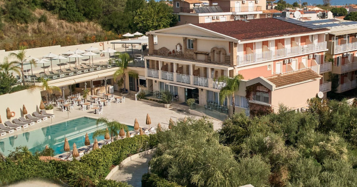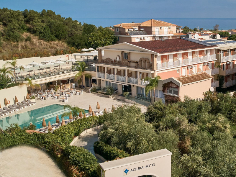 Altura Hotel, part of the Blue Collection Resorts, was fully renovated in 2017. It is an all-inclusive family friendly hotel, situated on a small hill offering magical views of the Tsilivi resort. The Hotel features 106 modern rooms of exceptional standards that offer several amenities the modern traveler needs. The surrounding area blends perfectly with the architecture of the three buildings, which are elegantly minimalistic with bright accents.Altura Hotel is located in the famous Tsilivi, just a short walk away from the insuperable namesake beach, which is awarded with a Blue Flag, only 5 kilometres from the port & Zakynthos town and 6 kilometres from Zakynthos National Airport, “D. Solomos”.
