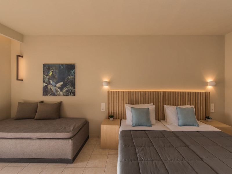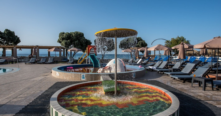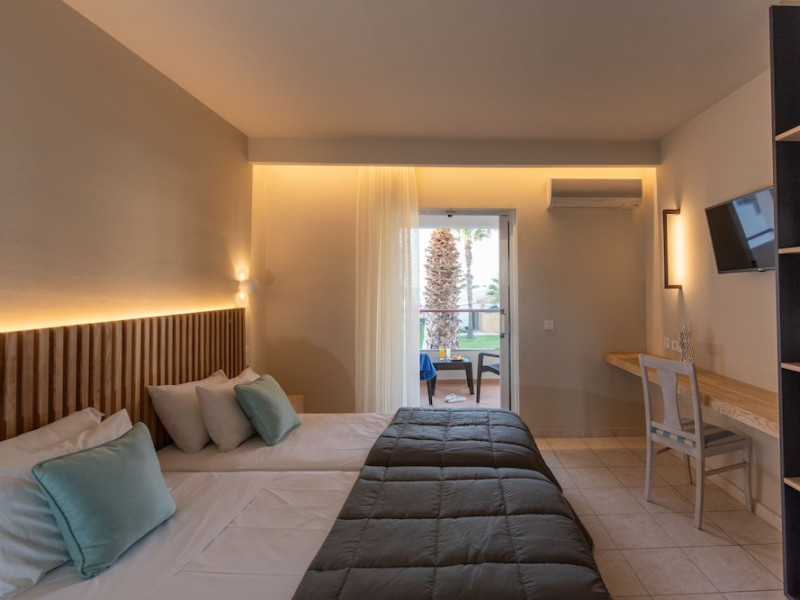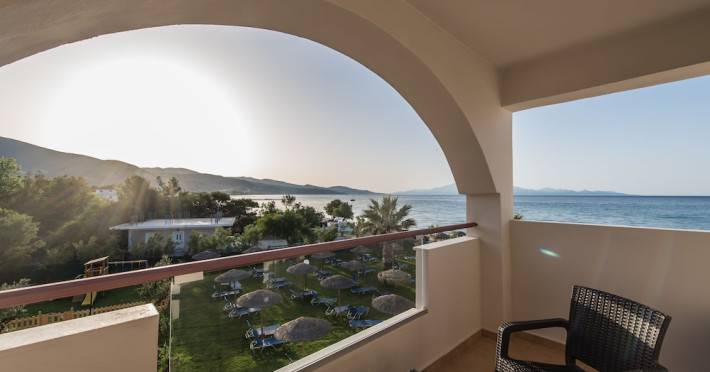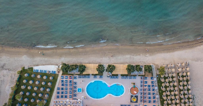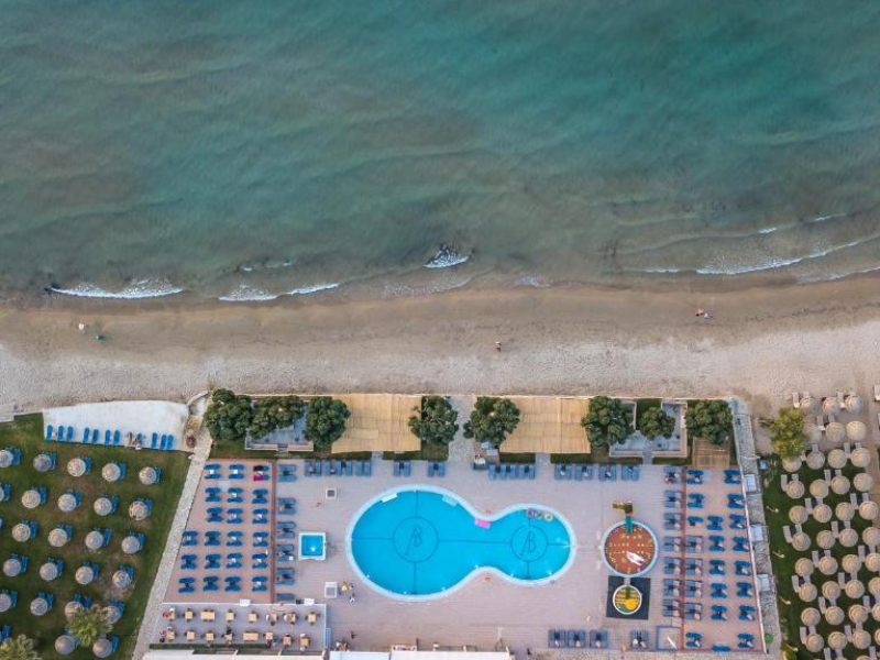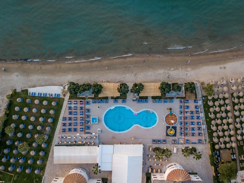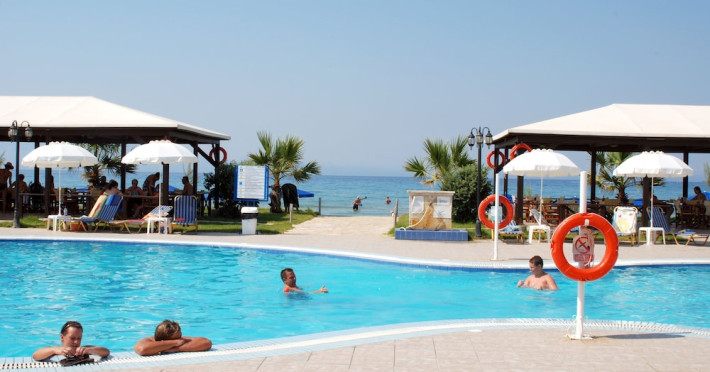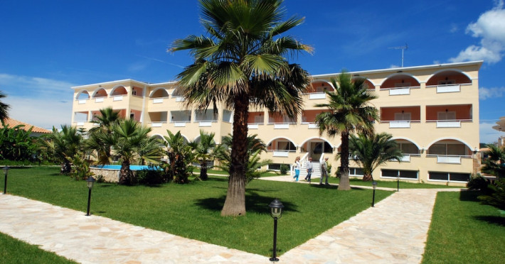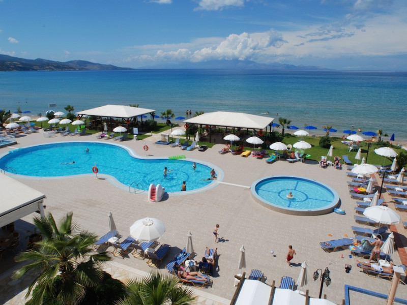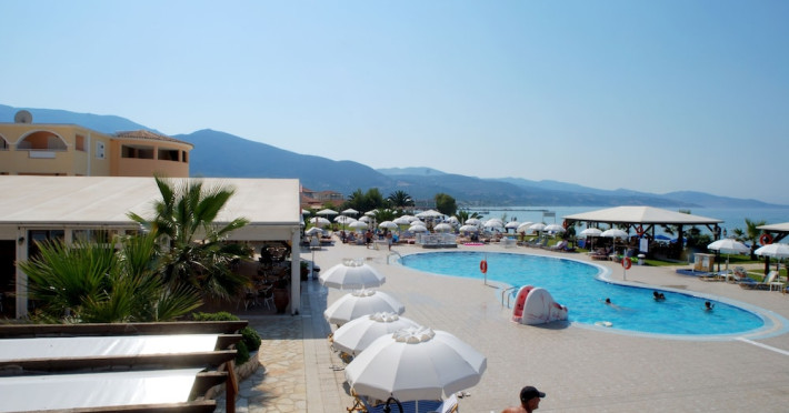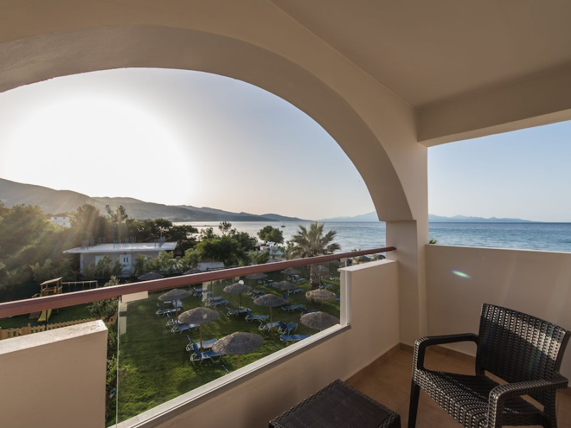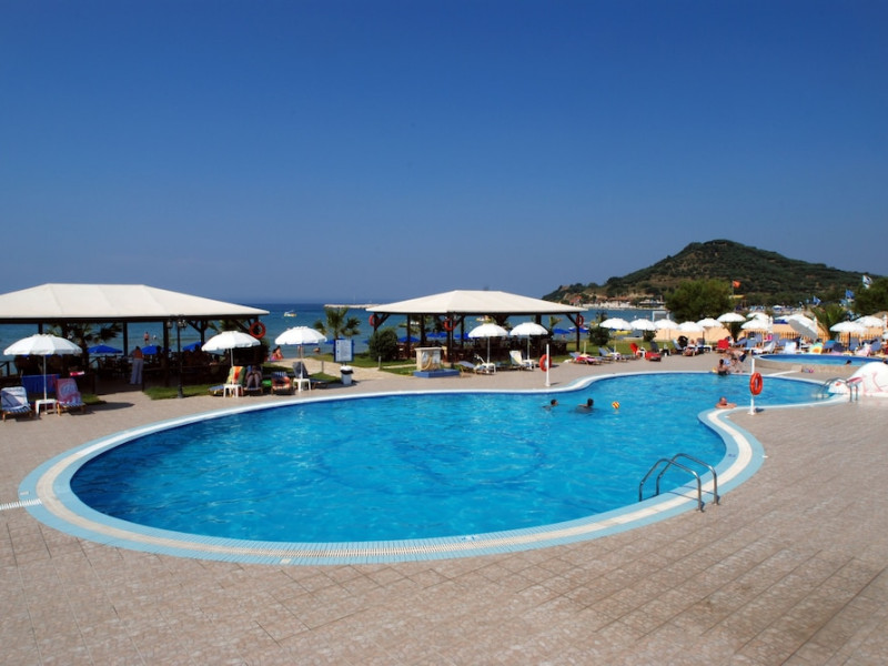 Located on the beach in Alykanas, Zakynthos, Alykanas Beach Hotel by Zante Plaza offers an all-inclusive experience with access to a seasonal outdoor pool. Guests can enjoy meals and beverages at the on-site restaurant and snack bar, as well as relax at the bar/lounge or poolside bar. The hotel features complimentary wireless internet access, concierge services, a picnic area, and a 24-hour front desk. Other amenities include express check-out, luggage storage, a garden, a terrace, a hot tub, and a children's playground. Guests can rent bicycles and cars. Entertainment options include evening entertainment and darts. The air-conditioned rooms include a flat-screen TV with satellite channels, a kitchenette, a desk, a coffee/tea maker, and a private bathroom. A continental and buffet breakfast is available. Airport shuttle service and free self-parking are available. Alykanas Beach and Alykes Beach are nearby. The Alykanas Beach Grand Hotel by Zante Plaza is a hotel.
