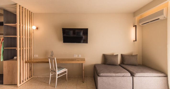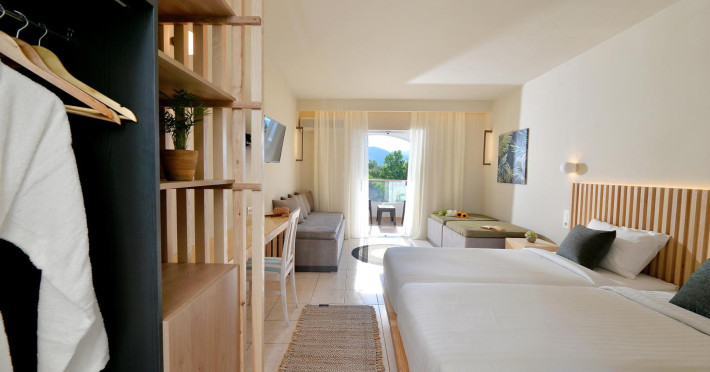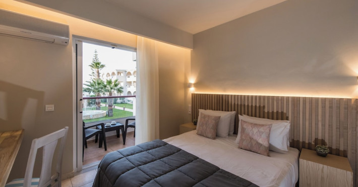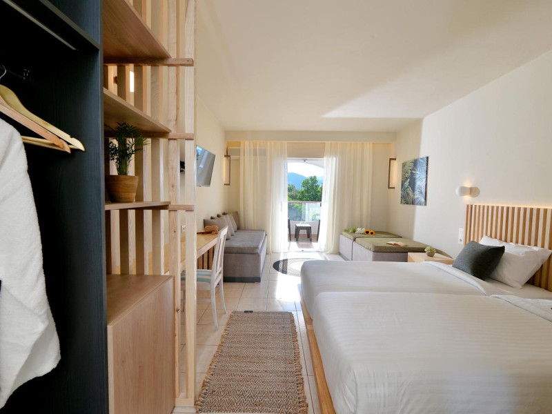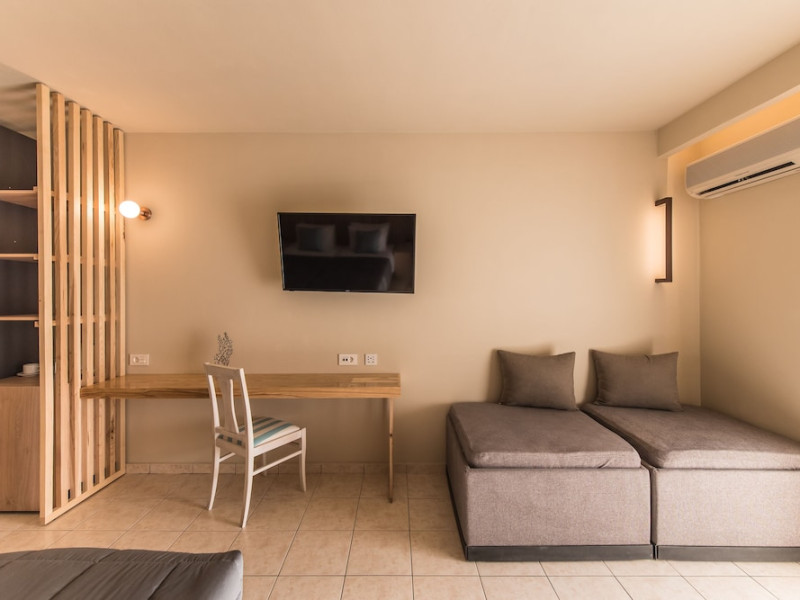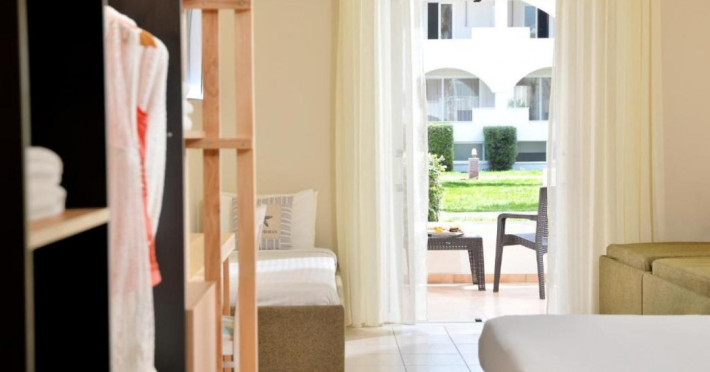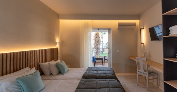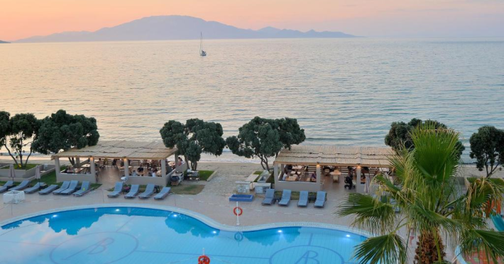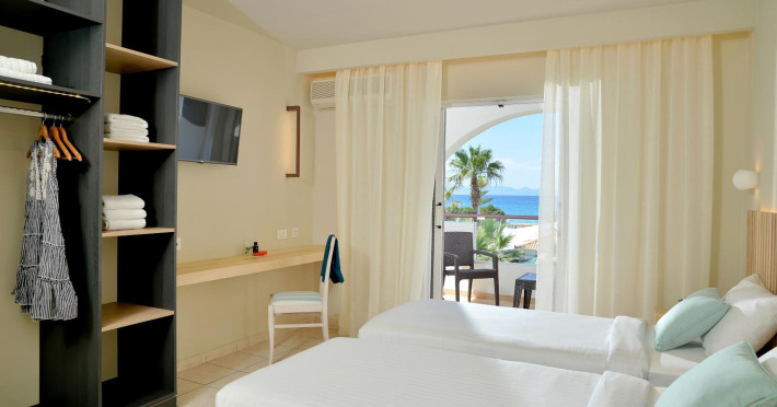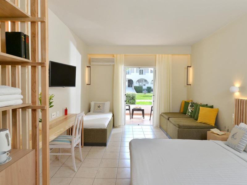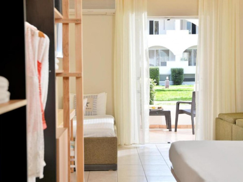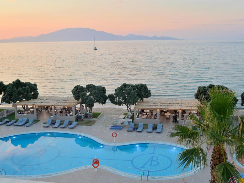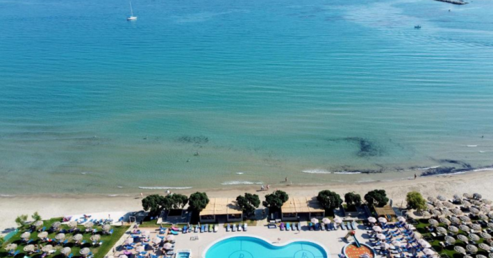 Located on the beach in Alykanas, Zakynthos, Alykanas Beach Hotel by Zante Plaza offers an all-inclusive experience with access to a seasonal outdoor pool. Guests can enjoy meals and beverages at the on-site restaurant and snack bar, as well as relax at the bar/lounge or poolside bar. The hotel features complimentary wireless internet access, concierge services, a picnic area, and a 24-hour front desk. Other amenities include express check-out, luggage storage, a garden, a terrace, a hot tub, and a children's playground. Guests can rent bicycles and cars. Entertainment options include evening entertainment and darts. The air-conditioned rooms include a flat-screen TV with satellite channels, a kitchenette, a desk, a coffee/tea maker, and a private bathroom. A continental and buffet breakfast is available. Airport shuttle service and free self-parking are available. Alykanas Beach and Alykes Beach are nearby. The Alykanas Beach Grand Hotel by Zante Plaza is a hotel.