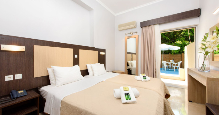 Amalia Hotel - Adults Only in Corfu Island is a chic and elegant sanctuary, that provides you with 50 modern rooms and a wide selection of facilities for a relaxed All-Inclusive Experience. Is located in Dassia, only 250 meters from the beach. Flooded with light, the hotel provides a wonderful sensory experience, with buffet dining, Pool Bar with exotic Cocktails and evening entertainment , an outdoor pool amidst olive groves and of course balmy sunny days.Embrace the life of leisure, with Amalia Hotel in Corfu that offer an all-encompassing, All-Inclusive experience. Where, from the moment you arrive, you can relax knowing that absolutely everything will be taken care of.