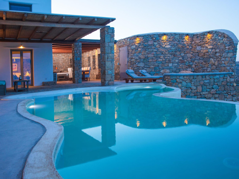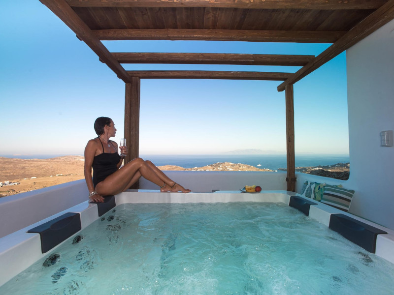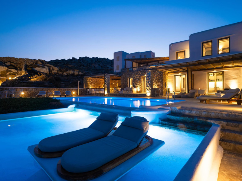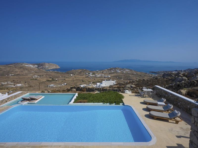 DREAM HOLIDAYS IN A DREAM VILLA IN MYKONOS.Your luxurious retreat on the serene south side of Kounoupas/Plintri, above Super Paradise beach. Indulge in private infinity pools, hot tubs/spa, breathtaking Aegean Sea views, and easy access to nearby famous beaches and attractions. Experience modern comfort, privacy, personalized service, and a tranquil ambiance. Join us for an unforgettable escape!