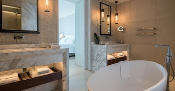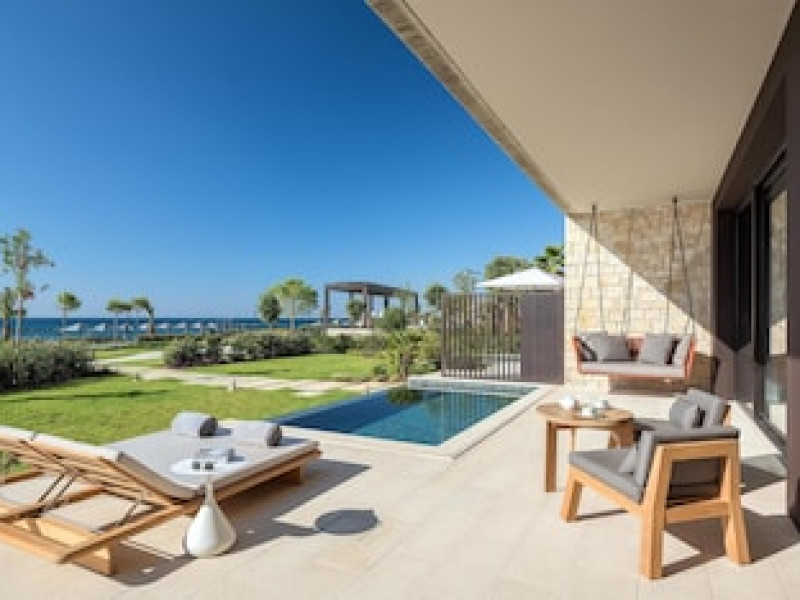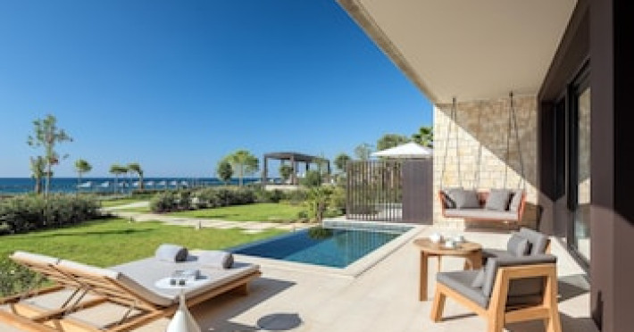 Cu vedere panoramică neobstrucționată la Marea Mediterană de la balcoane sau terase, toate camerele sunt dotate cu aer condiționat, TV cu ecran plat cu canale internaționale, facilități pentru prepararea de cafea și ceai și mini-bar cu apă și băuturi răcoritoare. Camerele sunt dotate cu o baie privată cu cadă, cabină de duș și articole de toaletă de lux.