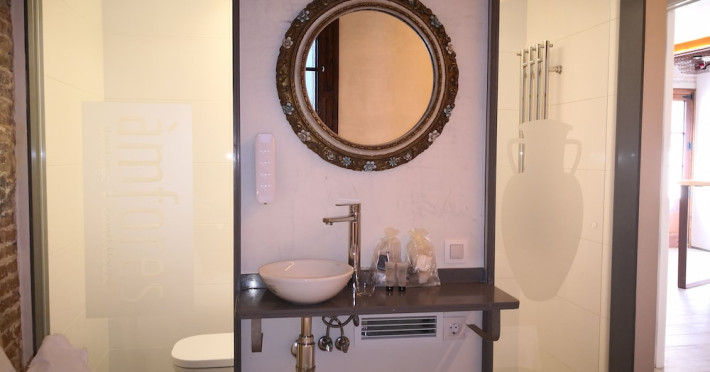 Located in the heart of El Born, Ámfores Boutique Guest House is housed in a building originally built in 1736, showcasing its baroque heritage with original stonework and wooden beams contrasted with modern, industrial design. It is centrally located in Barcelona, steps from Palau de la Música Catalana and a short walk from Barcelona Cathedral and La Rambla. The guesthouse offers air-conditioned rooms with flat-screen televisions, complimentary wireless internet access, digital programming, phones, safes, and daily housekeeping. Bathrooms feature showers with rainfall showerheads and hair dryers. Guests can enjoy a seasonal outdoor pool, a terrace, express check-in/check-out, and multilingual staff. Tour/ticket assistance is available. The nearest major airport is Barcelona El Prat Airport (BCN), 19.5 km away. The Amfores Boutique Guest House is a hotel.