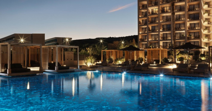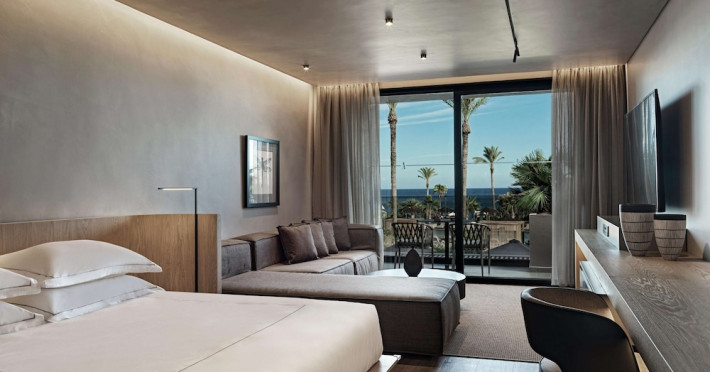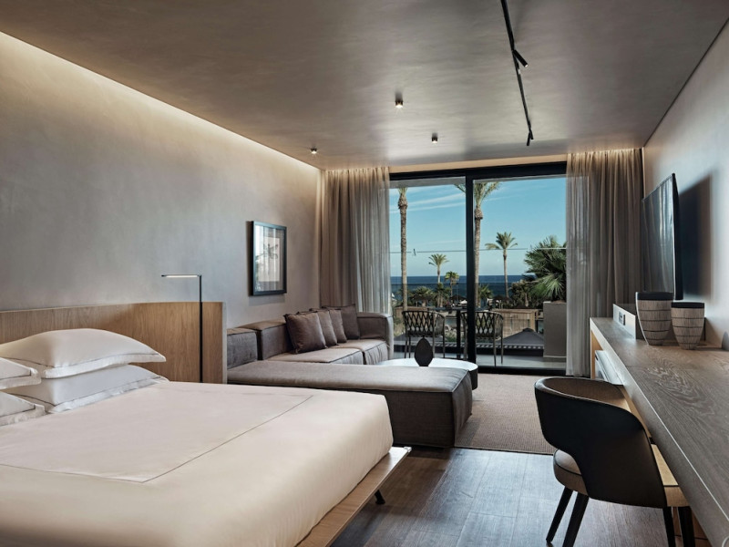 A complimentary buffet breakfast is served daily. The hotel restaurant offers Chinese, French, and Greek cuisine, with vegetarian, dairy-free, and vegan options available upon request. Guests can relax at the bar/lounge or the beach bar.