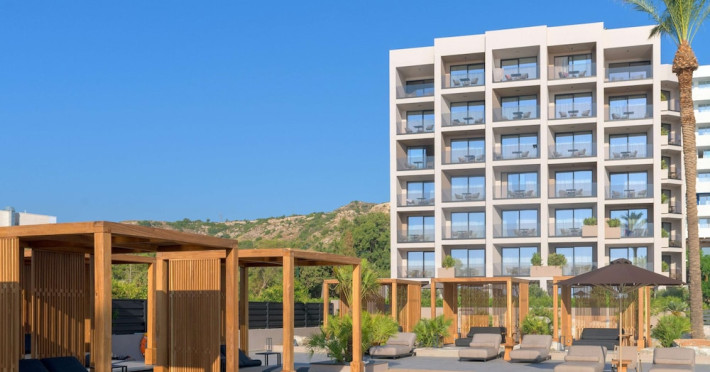 Nearby attractions include Faliraki Beach (100 metres), Water Park Faliraki (0.9 km), and Kallithea Beach (1.9 km). Rhodes International Airport is 16 km away. The Ammades All Suites Beach Hotel & Spa – Adults Only is a hotel.
