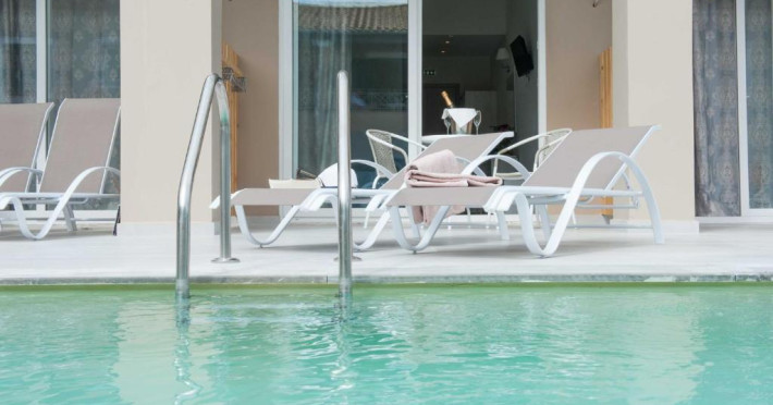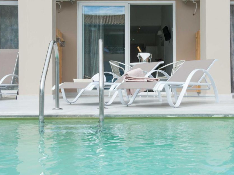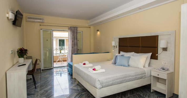This adults only hotel offers everything in minimal environment, in the most romantic area of Corfu Island. The hotel offers a pool with hydro massage and a small gym. The most famous beach of Sidari area, Canal d' Amour spreads out in front of you, only 15 meters away from the hotel. Ideally situated hotel, in a peaceful location, yet close to the beach and resort amenities.The all-inclusive package of Amour Holiday Resort includes:Buffet Breakfast at Senses Restaurant, from 07:30 to 10:00Morning Snacks at Mystique Bar, from 11:00 to 12:00 (finger mini sandwiches)Buffet Lunch at Senses Restaurant, from 12:30 to 14:30Coffee/tea & Cake Hour at Mystique Bar, from 15:00 to 18:00Buffet Dinner at Senses Restaurant, from 19:00 to 21:30During meals, local drinks (Draft beer‚ house wine, soft drinks, tap water) are included.Mystique Bar serves alcoholic & non-alcoholic drinks, filter coffee & tea from 10:30 to 22:45. Any consumption after 22:45 or any extra drink than the above is at extra charge.All-inclusive package includes locally produced or bottled spirits of each kind (Ouzo, Gin, Vodka, Rum) draft beer‚ house wine, soft drinks, tab water, tea and filter coffee.