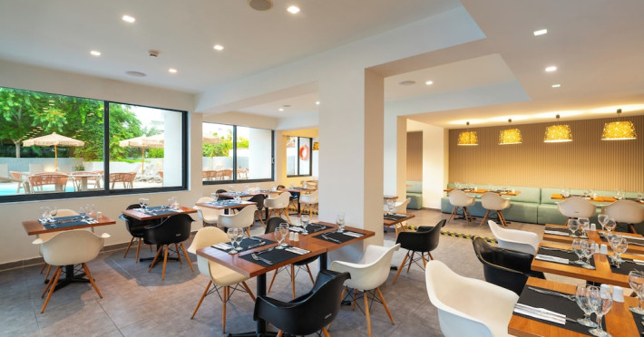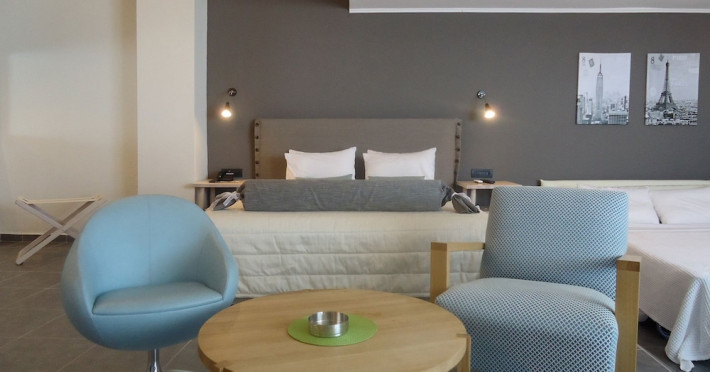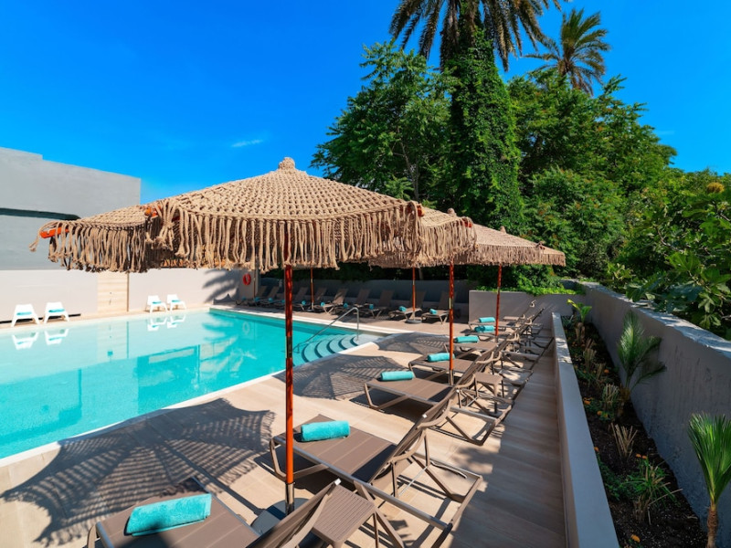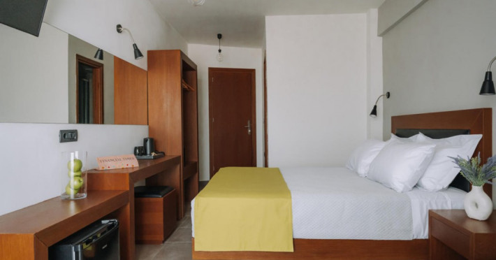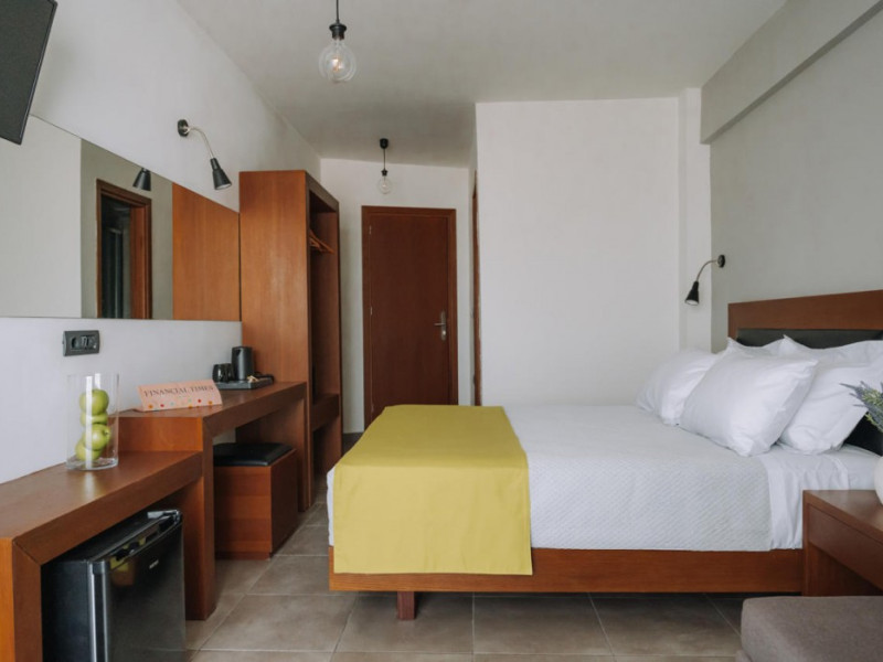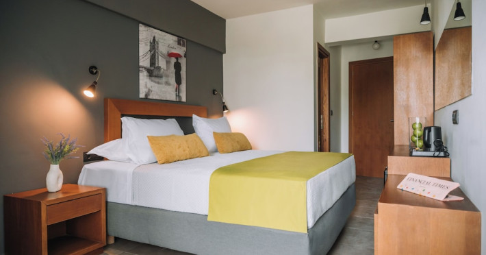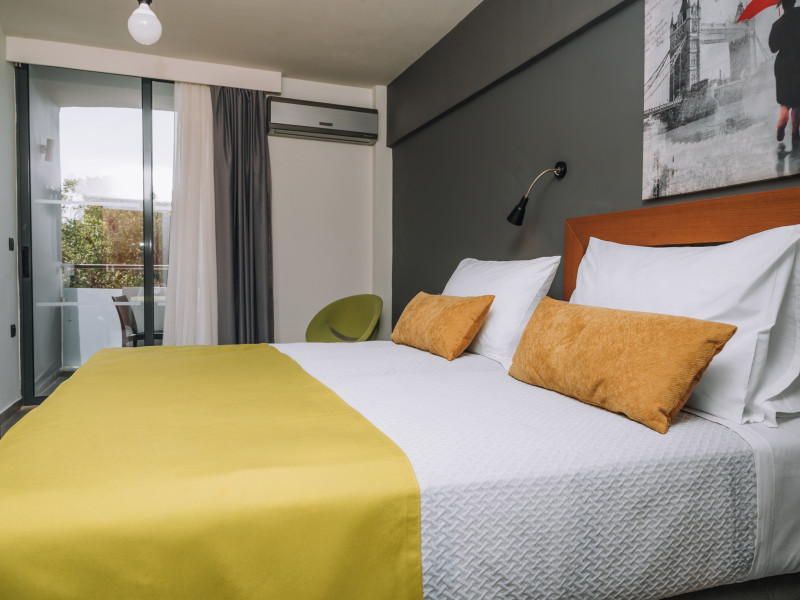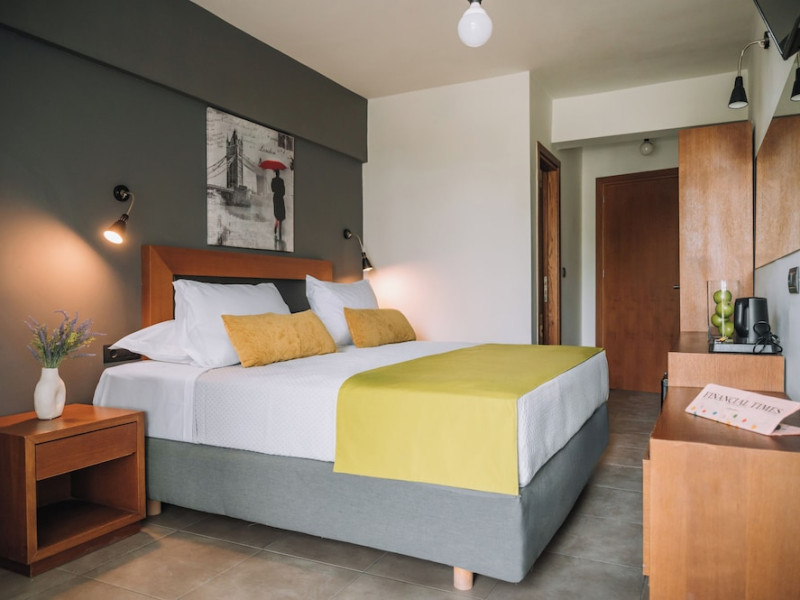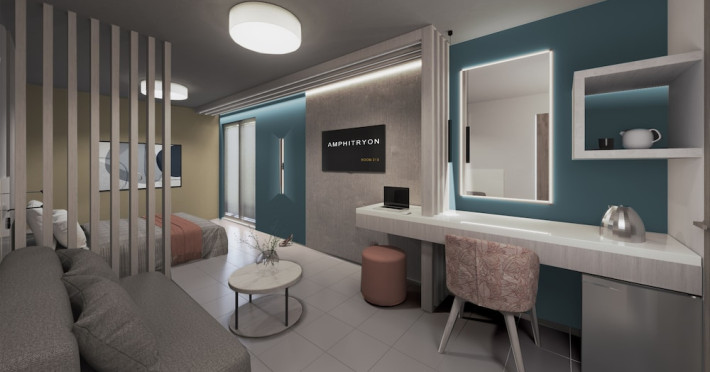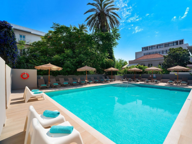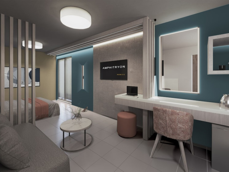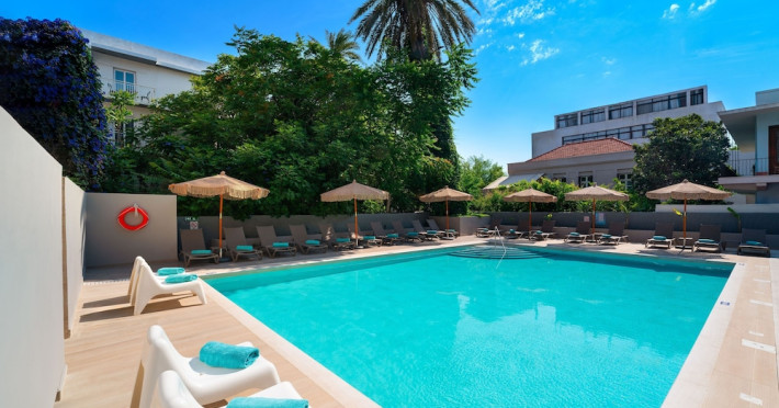 Amphitrion City Hotel is centrally located in Rhodes, within walking distance of the shopping area, historical sites including Mandraki Port and the Palace of the Grand Master, and approximately 700 meters from Elli Beach. Diagoras Airport is 14.1 km away and Rhodes Port is 1.6 km away. The hotel offers air-conditioned rooms with refrigerators, plasma televisions with satellite channels, private bathrooms with showers, complimentary toiletries, hair dryers, safes, and desks. Housekeeping is provided daily. Guests can enjoy an outdoor pool, complimentary wireless internet access, concierge services, a restaurant, a bar/lounge, and a poolside bar. Amenities include a 24-hour front desk, luggage storage, and a safe deposit box at the front desk. A roundtrip airport shuttle is available for a surcharge. The Amphitryon City Hotel is a hotel.
