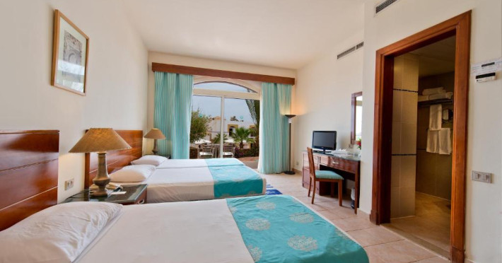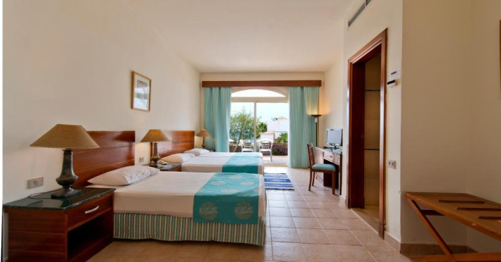Hotelul are o plajă privată, o piscină mare în aer liber cu terasă cu șezlonguri și camere moderne cu balcoane cu vedere la grădini, piscină sau Marea Roșie.