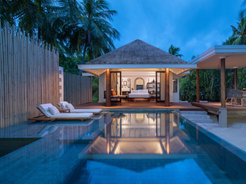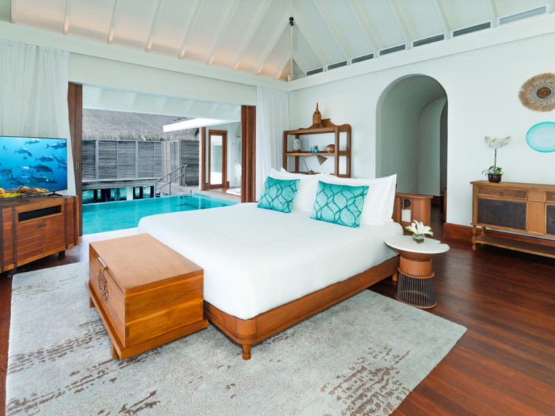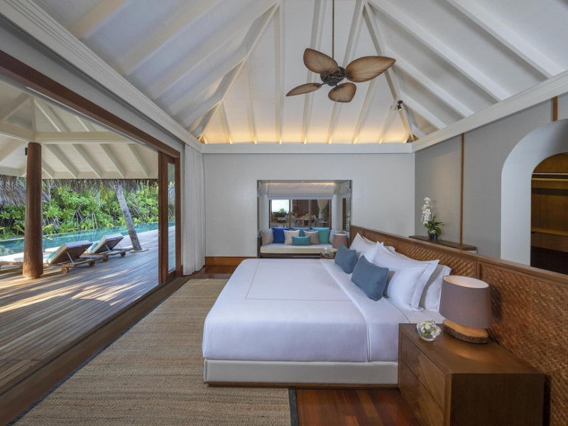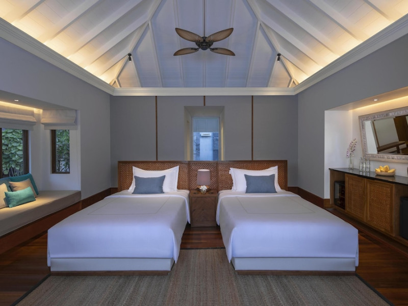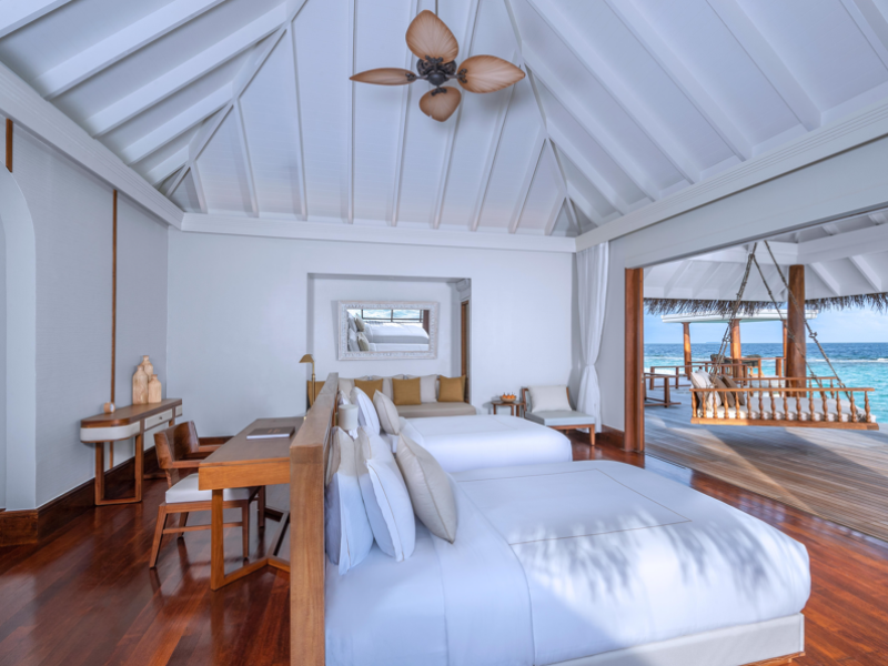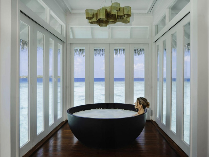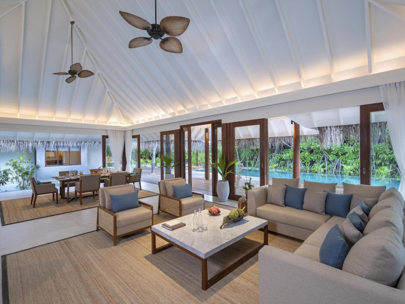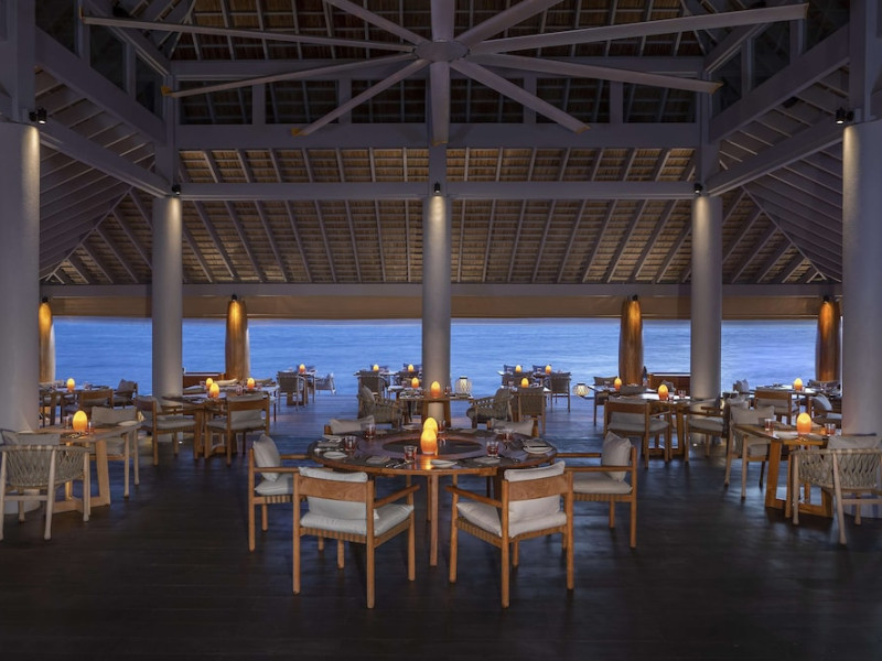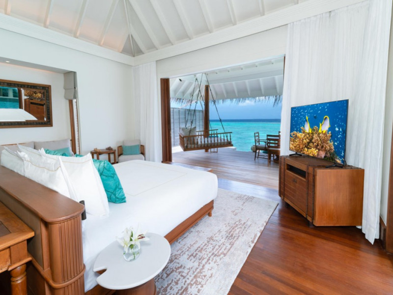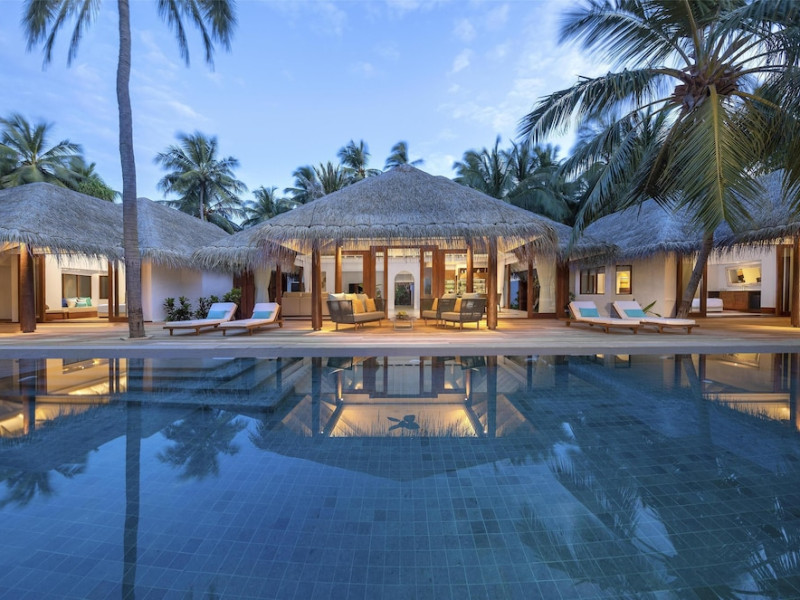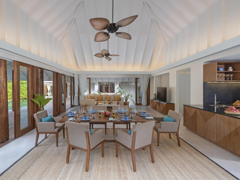 Anantara Kihavah Maldives Villas is located on Kihavah Huravalhi, a pristine Maldivian island in the Baa Atoll archipelago, a 30-minute seaplane flight from Malé International Airport. The resort offers 79 spacious private pool villas ranging from 260 to 2,730 square meters, situated overwater with ocean views or on a private beach. Guests can snorkel in a UNESCO World Biosphere Reserve, explore nearby islands, and enjoy sunset cruises. Dining options include four restaurants offering diverse world cuisines and unique underwater and overwater experiences. Amenities include a full-service spa, outdoor pool, hot tub, outdoor tennis court, complimentary Wi-Fi, concierge services, babysitting (surcharge), 24-hour room service, and multiple bars/lounges. Each villa features a private pool, Smart TV, memory foam bed, down comforters, Egyptian cotton sheets, private balcony or patio, and a bathroom with a separate bathtub and shower. Free self parking is available. The resort is 23.3 km from Hanifaru Bay, 4.7 km from Gemendhoo, and 22 km from Kihaadhuffaru Island Beach. The nearest airport is Dharavandhoo Island (DRV), 26.1 km away. A complimentary full breakfast is served daily. The Anantara Kihavah Maldives Villas is a Tourist hotel. The nightlife/restaurants are located in the hotel.