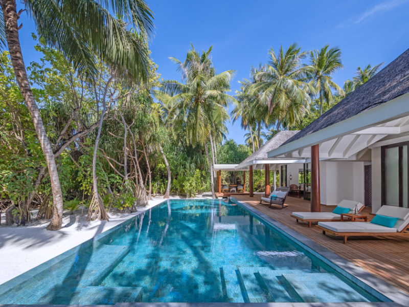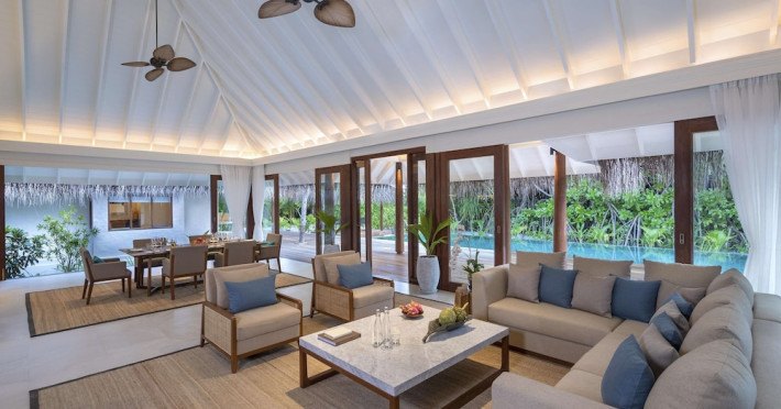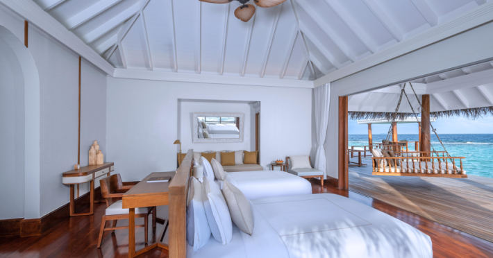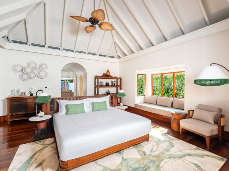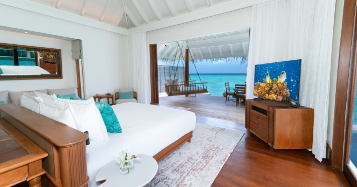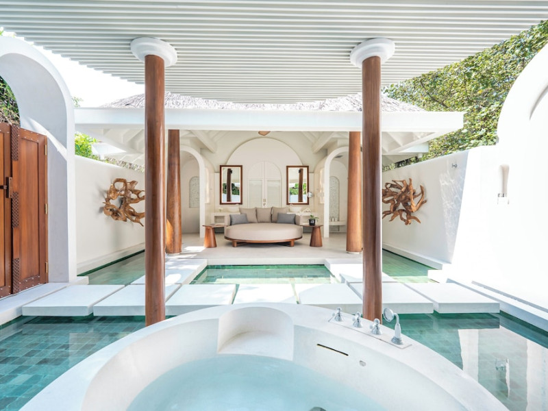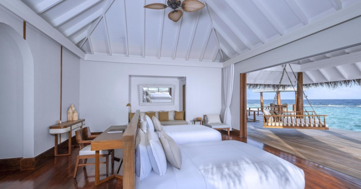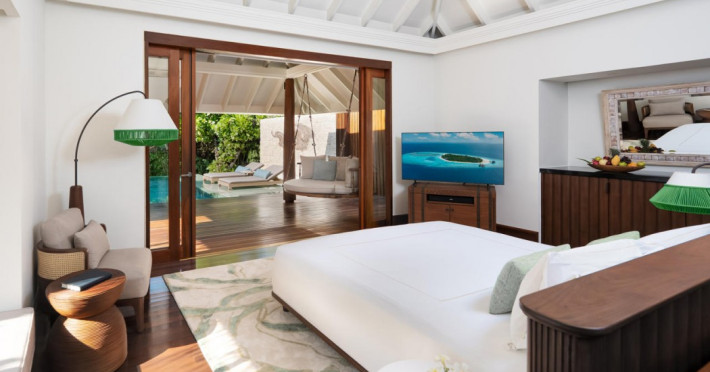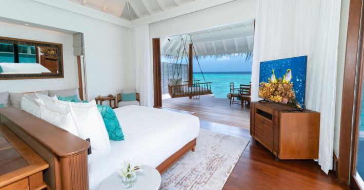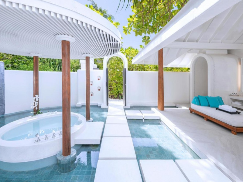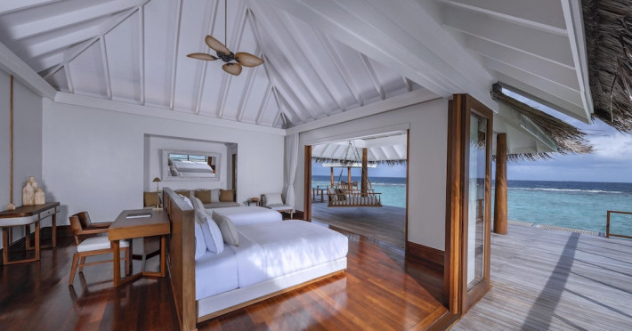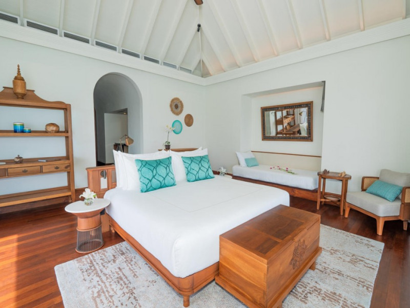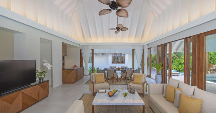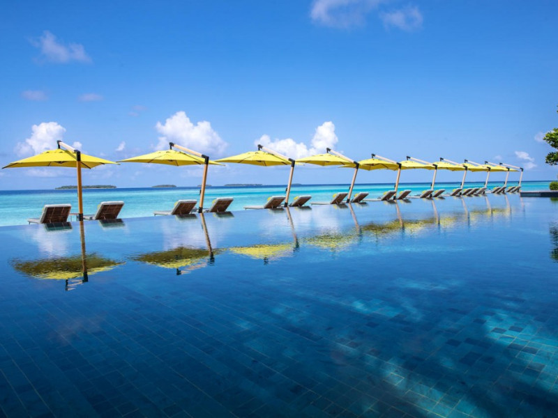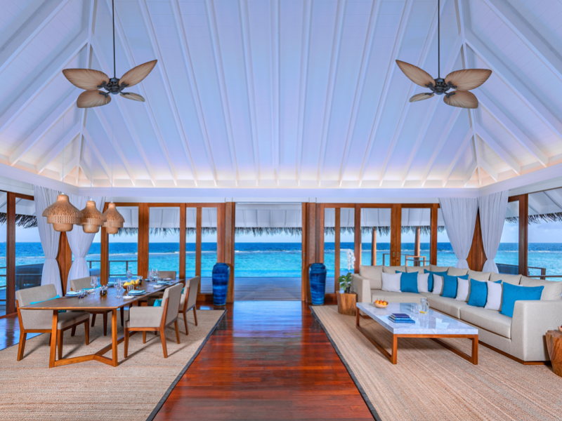 Anantara Kihavah Maldives Villas is located on Kihavah Huravalhi, a pristine Maldivian island in the Baa Atoll archipelago, a 30-minute seaplane flight from Malé International Airport. The resort offers 79 spacious private pool villas ranging from 260 to 2,730 square meters, situated overwater with ocean views or on a private beach. Guests can snorkel in a UNESCO World Biosphere Reserve, explore nearby islands, and enjoy sunset cruises. Dining options include four restaurants offering diverse world cuisines and unique underwater and overwater experiences. Amenities include a full-service spa, outdoor pool, hot tub, outdoor tennis court, complimentary Wi-Fi, concierge services, babysitting (surcharge), 24-hour room service, and multiple bars/lounges. Each villa features a private pool, Smart TV, memory foam bed, down comforters, Egyptian cotton sheets, private balcony or patio, and a bathroom with a separate bathtub and shower. Free self parking is available. The resort is 23.3 km from Hanifaru Bay, 4.7 km from Gemendhoo, and 22 km from Kihaadhuffaru Island Beach. The nearest airport is Dharavandhoo Island (DRV), 26.1 km away. A complimentary full breakfast is served daily. The Anantara Kihavah Maldives Villas is a Tourist hotel. The nightlife/restaurants are located in the hotel.