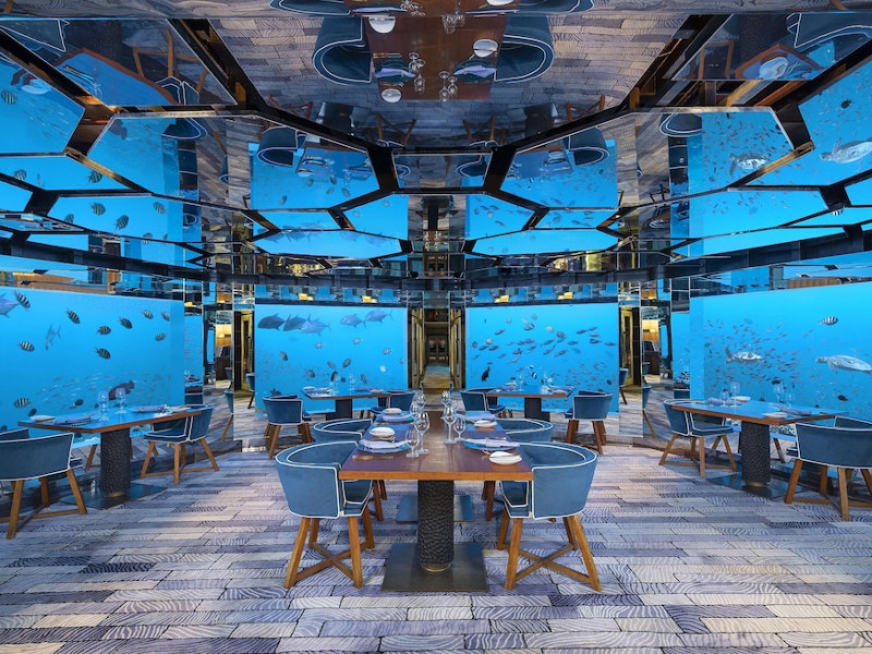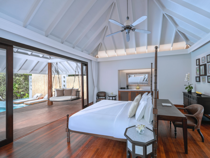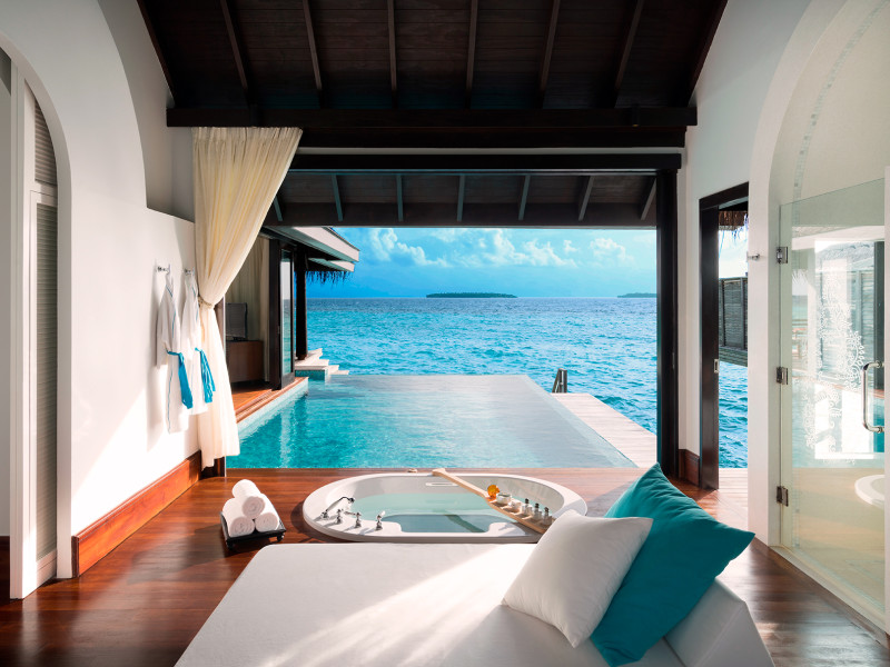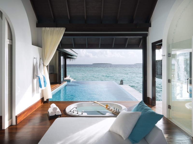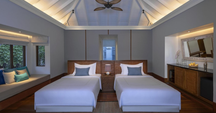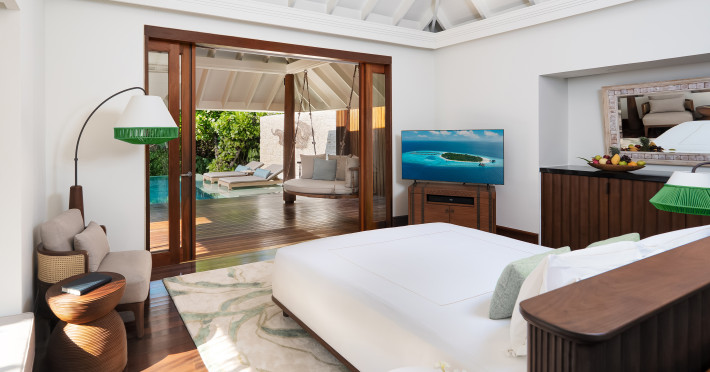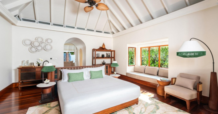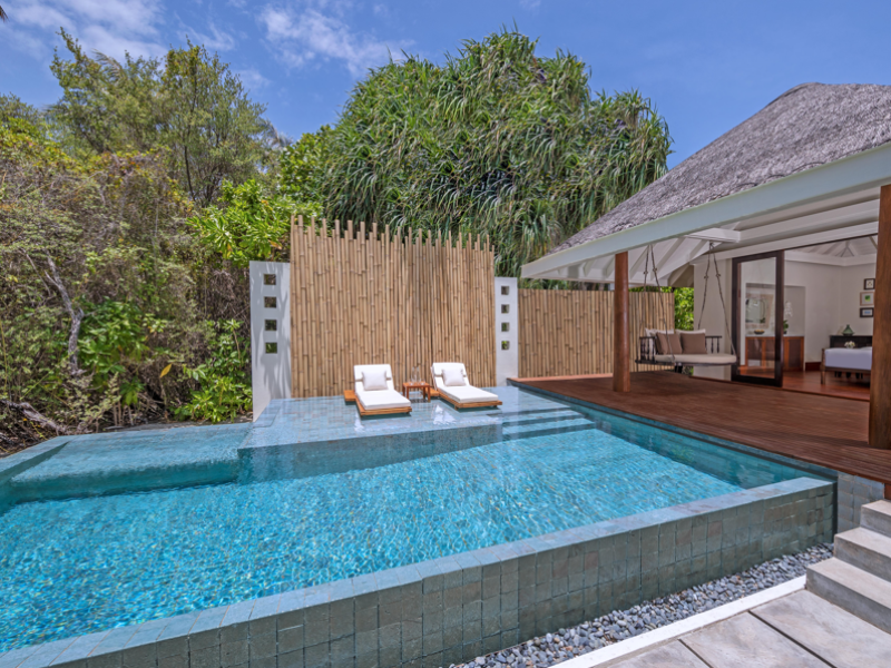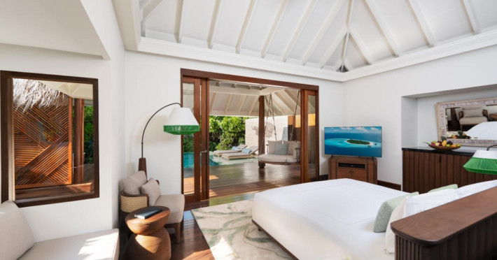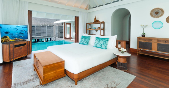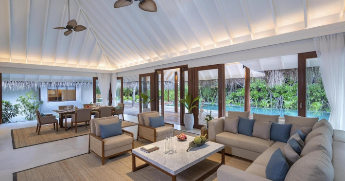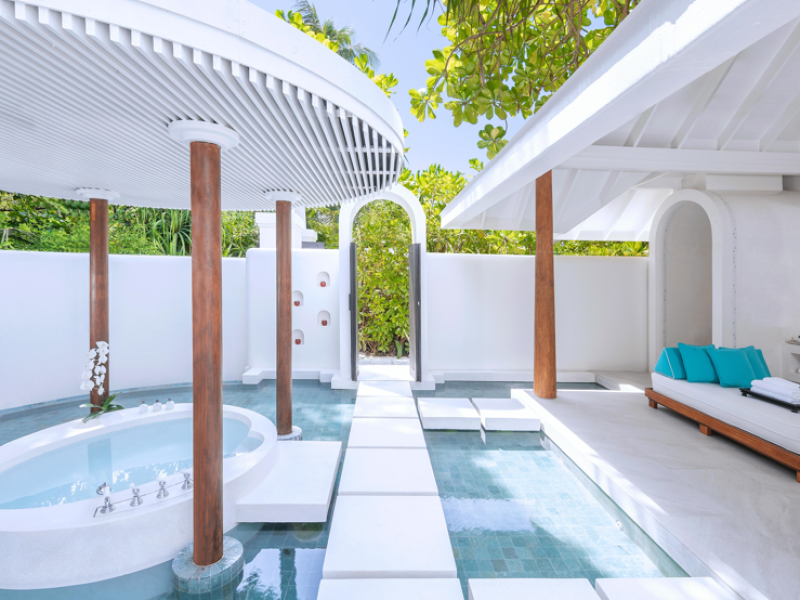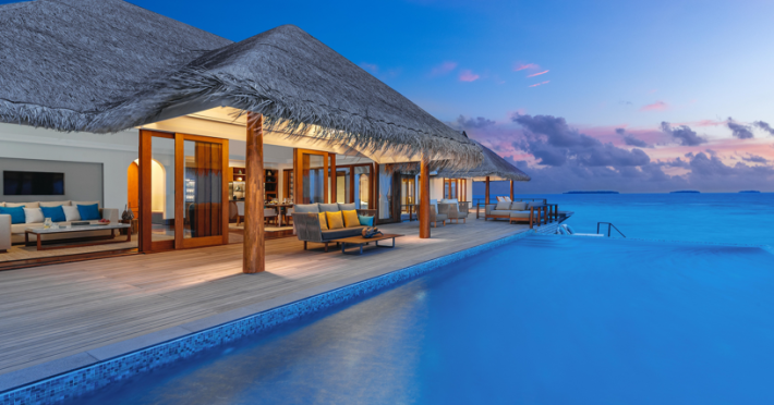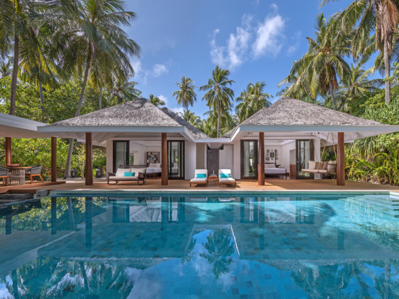 Anantara Kihavah Maldives Villas is located on Kihavah Huravalhi, a pristine Maldivian island in the Baa Atoll archipelago, a 30-minute seaplane flight from Malé International Airport. The resort offers 79 spacious private pool villas ranging from 260 to 2,730 square meters, situated overwater with ocean views or on a private beach. Guests can snorkel in a UNESCO World Biosphere Reserve, explore nearby islands, and enjoy sunset cruises. Dining options include four restaurants offering diverse world cuisines and unique underwater and overwater experiences. Amenities include a full-service spa, outdoor pool, hot tub, outdoor tennis court, complimentary Wi-Fi, concierge services, babysitting (surcharge), 24-hour room service, and multiple bars/lounges. Each villa features a private pool, Smart TV, memory foam bed, down comforters, Egyptian cotton sheets, private balcony or patio, and a bathroom with a separate bathtub and shower. Free self parking is available. The resort is 23.3 km from Hanifaru Bay, 4.7 km from Gemendhoo, and 22 km from Kihaadhuffaru Island Beach. The nearest airport is Dharavandhoo Island (DRV), 26.1 km away. A complimentary full breakfast is served daily. The Anantara Kihavah Maldives Villas is a Tourist hotel. The nightlife/restaurants are located in the hotel.