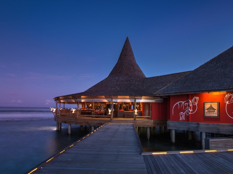 Anantara Veli Maldives Resort, an adults-only haven, offers overwater bungalows with stunning views of the azure waters and abundant marine life. Located in the South Malé Atoll, a 35-minute journey from Malé International Airport, the resort boasts a private beach, infinity-edge pool, fitness center, and a full-service Sundari Ayurvedic Spa. Enjoy a variety of water sports, including diving and surfing, and savor diverse world cuisines at the resort's restaurants, including Sea.Fire.Salt. All-inclusive rates are available, with some charges applying to specific restaurants, dinners, beverages, and amenities. Complimentary amenities include Wi-Fi, breakfast, and airport shuttle (surcharge applies). Each of the 67 individually decorated guestrooms features an iPod docking station, minibar, private furnished patio, and a private bathroom with a deep soaking tub and rainfall showerhead. Families are welcome at the nearby sister resort, Anantara Dhigu. Families can dine at Baan Hurraa, Origami and 73 Degrees restaurants on Anantara Veli for dinner before 9.00 pm. The Anantara Veli Maldives Resort - Adults Only is a Tourist hotel. The nightlife/restaurants are easily accessible by taxi or bus from the hotel.