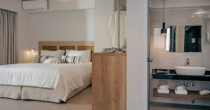 Located in Stalida, Anassa Stalis Suites Adults Only 16+ is 200 metres from Alexander Beach and less than 1 km from Stalida Beach and a 10-minute walk from Ikaros and Kernos Beach. This hotel offers accommodation with an outdoor swimming pool, free private parking, a garden, and a terrace. Guests can enjoy a bar, room service, and complimentary WiFi throughout the property. The air-conditioned rooms feature a wardrobe, coffee machine, a safety deposit box, a flat-screen TV, a balcony, and a private bathroom with a shower, hairdryer, bed linen and towels. A complimentary local cuisine breakfast is served daily from 8:00 AM to 10:30 AM. Other amenities include complimentary wireless internet access, safes, and daily housekeeping. Irons/ironing boards are available upon request. The nearest airport is Nikos Kazantzakis Airport (HER), 31.9 km away. The Anassa Stalis Suites Adults Only 16+ is a hotel.