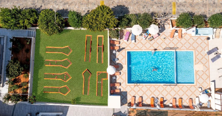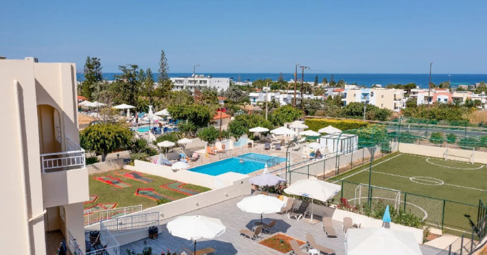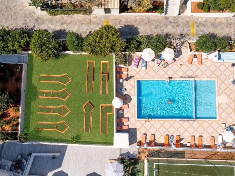 Facilitati hotel: Complexul ofera trei piscine exterioare cu apa dulce, inclusiv piscina pentru copii, terase cu sezlonguri si umbrele, restaurant si pool bar cu gustari si bauturi. De asemenea, sunt disponibile mini club pentru copii, loc de joaca, activitati de divertisment, mini golf, sala de fitness si terenuri sportive. Hotelul pune la dispozitie Wi-Fi, receptie, parcare si servicii de asistenta pentru turisti, asigurand conditii optime pentru un sejur relaxant.
