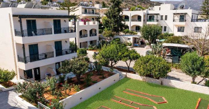 Descriere: Anastasia Hotel este un hotel de 3 stele administrat in regim familial, situat in statiunea Stalis, in partea de nord-est a insulei Creta. Complexul este inconjurat de gradini cu vegetatie mediteraneana si alei cu flori, oferind o atmosfera relaxanta si primitoare. Format din mai multe cladiri dispuse intr-un cadru verde, hotelul imbina ospitalitatea cretana traditionala cu facilitati moderne, fiind potrivit pentru cupluri si familii.