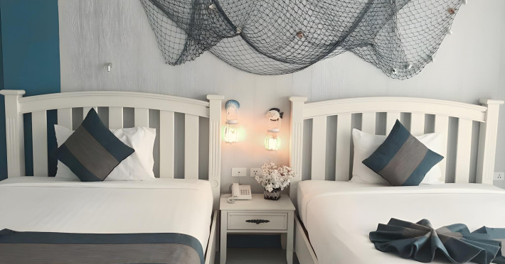 Ancora Y&W Boutique Hotel offers comfortable accommodations with free Wi-Fi. Guests can enjoy convenient amenities such as complimentary parking, a reception area with safety deposit boxes, and tour assistance. The hotel provides car hire and shuttle services for exploring Krabi. For added convenience, laundry, dry cleaning, and daily housekeeping services are available. The hotel is smoke-free, with designated smoking areas. Rooms feature air conditioning and blackout curtains in some rooms, and select rooms include a balcony or terrace, television with cable, a refrigerator, bottled water, coffee/tea maker, and a mini bar. Bathrooms may include a hair dryer and toiletries. Guests can enjoy a complimentary breakfast, coffee at the cafe, and meals at the hotel's restaurant. A bar is also available. The Ancora Blu Boutique Hotel is a hotel.