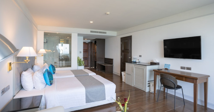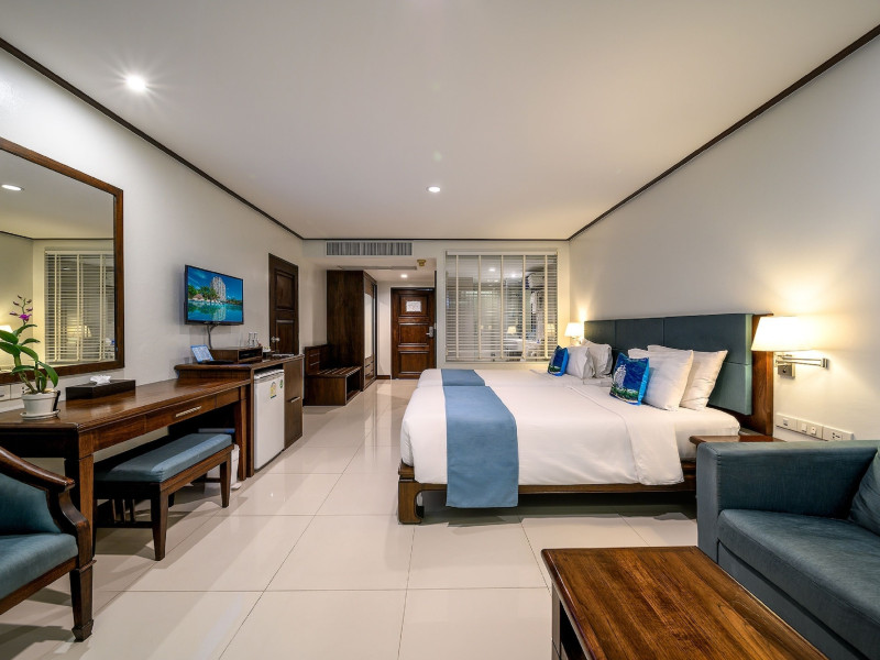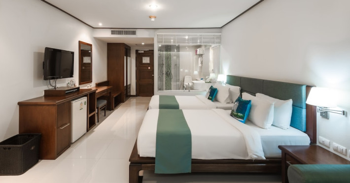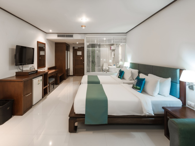 Andaman Beach Suites Hotel is a family-friendly high-rise hotel overlooking Patong Beach, approximately 50 meters from the resort center. It offers air-conditioned rooms with complimentary Wi-Fi, refrigerators, minibars, safes, and coffee/tea makers. Bathrooms include showers and complimentary toiletries. The hotel features multiple restaurants and bars, including a poolside bar and lobby bar, serving Thai and international cuisine. Guests can enjoy multiple outdoor swimming pools, a sauna, a fitness center, and a tennis court. Additional amenities include a 24-hour front desk, concierge services, laundry service, and free self-parking. Airport transportation is available for a surcharge. The hotel is within walking distance of Patong Beach and Bangla Road, and close to Jungceylon Shopping Center. The Andaman Beach Suites Hotel is a Beach Resort, Child Friendly, Honeymoon, Leisure, Resort, Tourist hotel. Located in Beach - Patong Beach area. The nightlife/restaurants are within walking distance from the hotel.