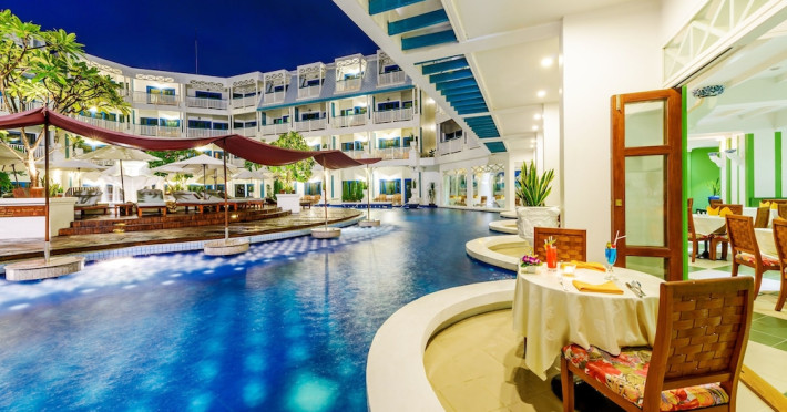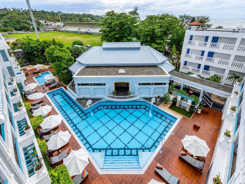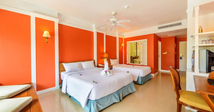 Located across the road from Karon Beach and a short walk from Karon Centre, Andaman Seaview Hotel offers air-conditioned rooms with private balconies. The hotel is approximately 50 minutes from Phuket International Airport and 30 minutes from Phuket Town. Rooms feature cable TV, tea and coffee making facilities, and private bathrooms with complimentary toiletries. Guests can enjoy two outdoor swimming pools, a fitness center, and a sauna. The hotel has a restaurant serving Thai and international cuisine, as well as poolside and sunset bars. Complimentary wireless internet access is available. Amenities include a 24-hour front desk, multilingual staff, dry cleaning/laundry services, and free self-parking. Cooked-to-order breakfasts are available daily for a fee. The ANDAMAN SEAVIEW HOTEL is a Resort, Tourist hotel. The nightlife/restaurants are easily accessible by taxi or bus from the hotel.