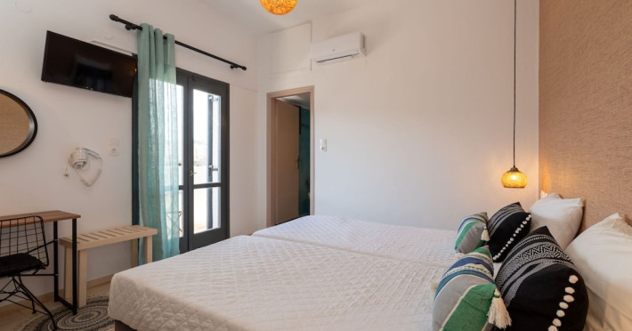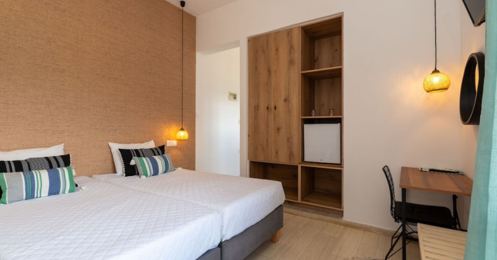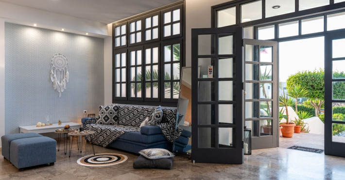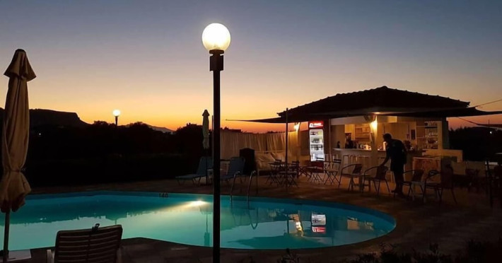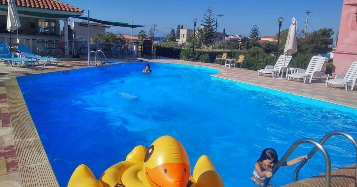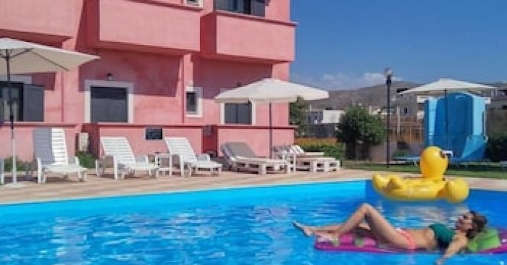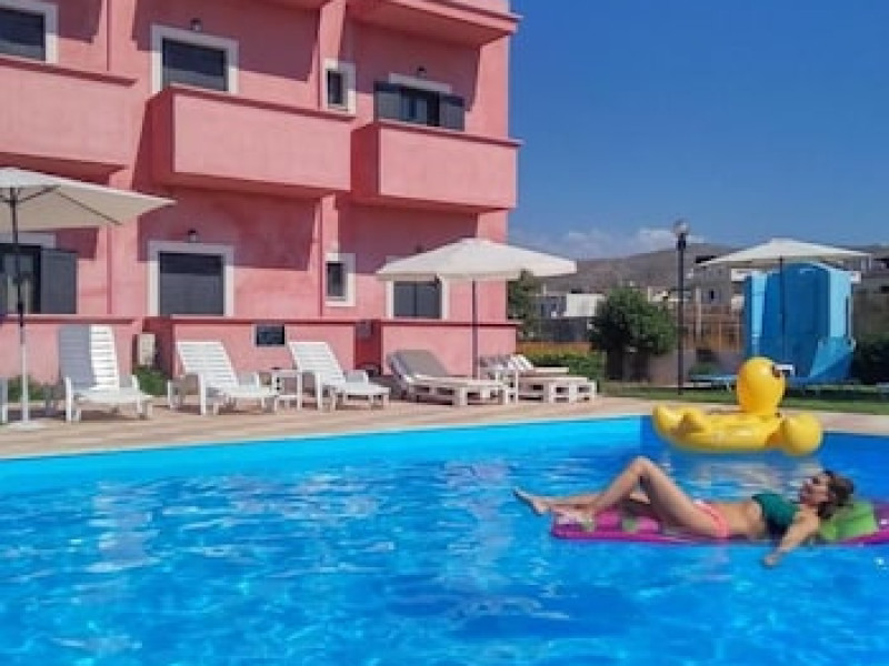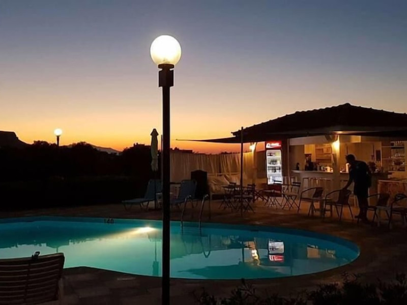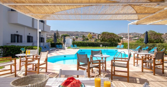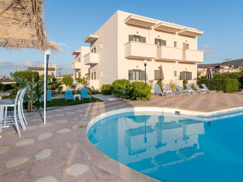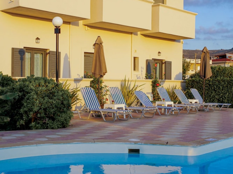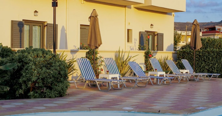 Facilities and services include air conditioning, Wi-Fi access, bar, parking, and swimming pool.Rooms feature air conditioning, Wi-Fi access, safe in room(extra charge), TV, telephone and hairdryer. Address ; Nirou Street, Kokkini Hani 71500, Greece.