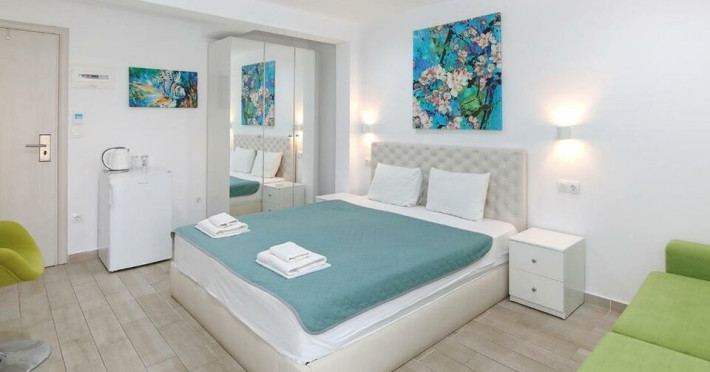 Recent renovat, hotelul Angelina este format din 40 de camere spatioase si moderne, toate dotate cu paturi duble mari, canapea extensibila, mini-frigider, fierbator electric, televizor cu ecran plat, birou, mobilier de balcon, aer conditionat, articole de toaleta, patut pentru copii (la cerere, gratuit) si ferestre izolate fonic. Exista, de asemenea, 4 camere cu paturi twin, pentru confortul clientilor.