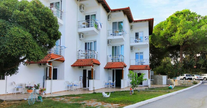 Hotelul Angelina 2*, situat chiar in fata marii albastre si cristaline din Ormos Panagias. Se afla la doar 10 minute de mers pe jos de faimoasa plaja Livrohio (Trani Ammouda) si la un minut de doc, de unde pornesc toate croazierele magice catre insula Athos si Ammouliani.