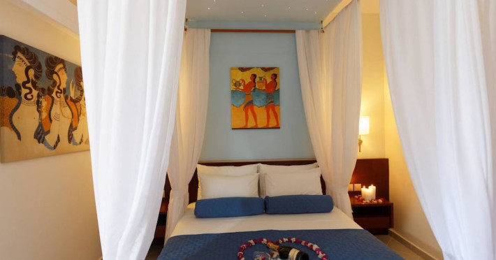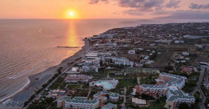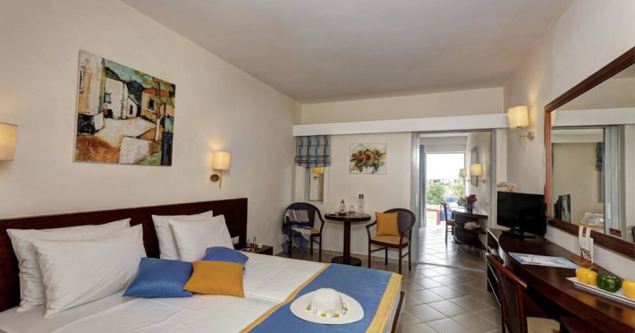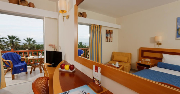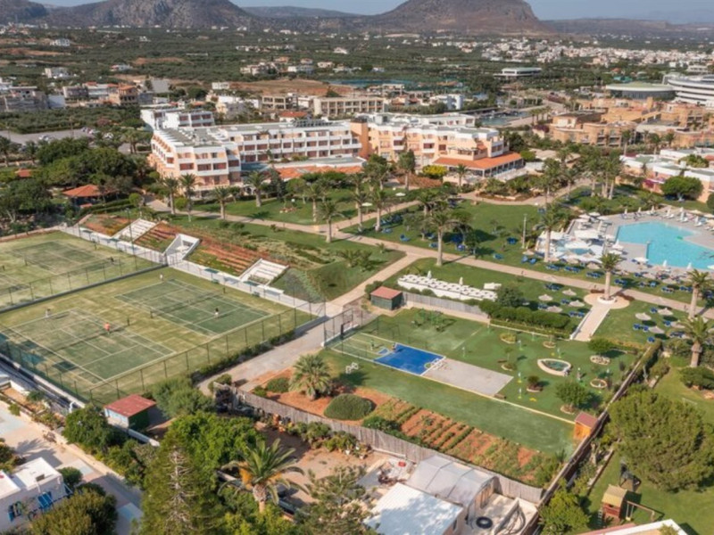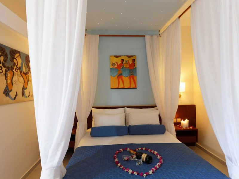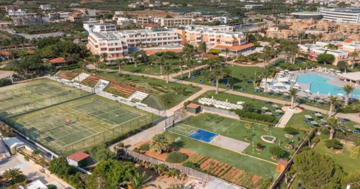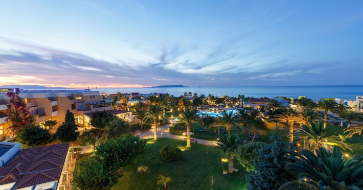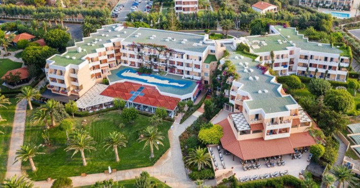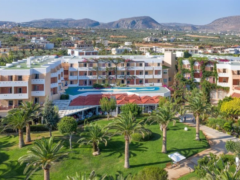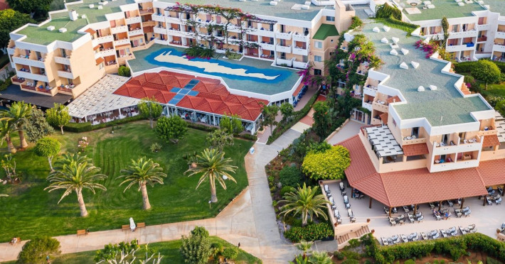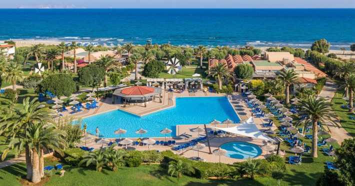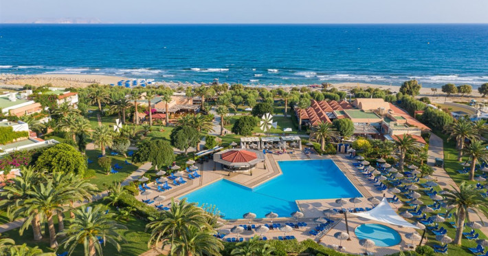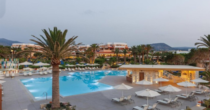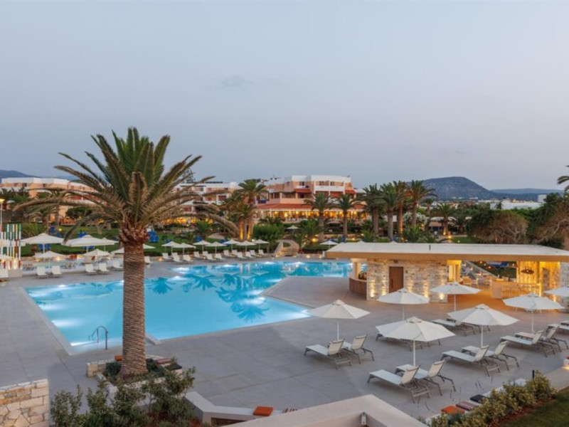 Facilities and services include free Wi-Fi, 24-hour reception, restaurant, bar, conference room, terrace, outdoor pool, indoor pool, children’s pool, playground, spa (extra charge), gym/fitness facilities, and car parking.Rooms feature a balcony or terrace and offer flat-screen TV (international satellite TV and music channels), air conditioning, Wi-Fi internet access, direct dial telephone (Extra charges), safe (extra charge), bathroom, WC, and hairdryer.**The All Inclusive-concept includes all meals (breakfast, lunch, dinner and snacks) and mealtime drinks such as soft drinks, beer, wine, water and alcoholic drinks, all of local brands. Drinks are served from morning until late evening (approx until 23.00 hrs). Opening times vary between different hotels. In certain hotels the activities program is also included.Individual pools heatable at extra charge. Minimum age for rooms with individual pools is 6+ years **Please be informed that the individual pools are heatable at extra cost.Address: 70014 Anissaras, Hersonissos, Crete, Greece.