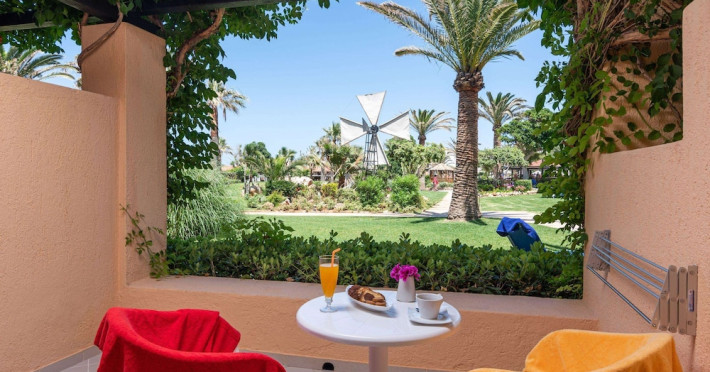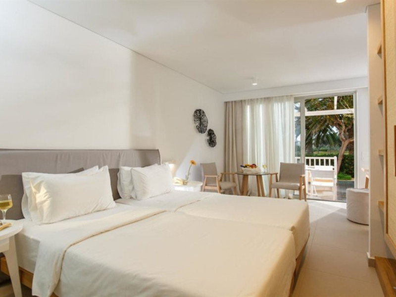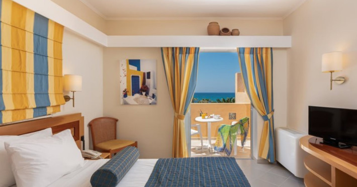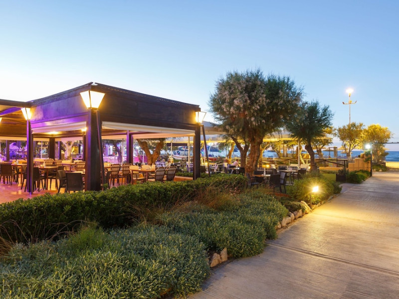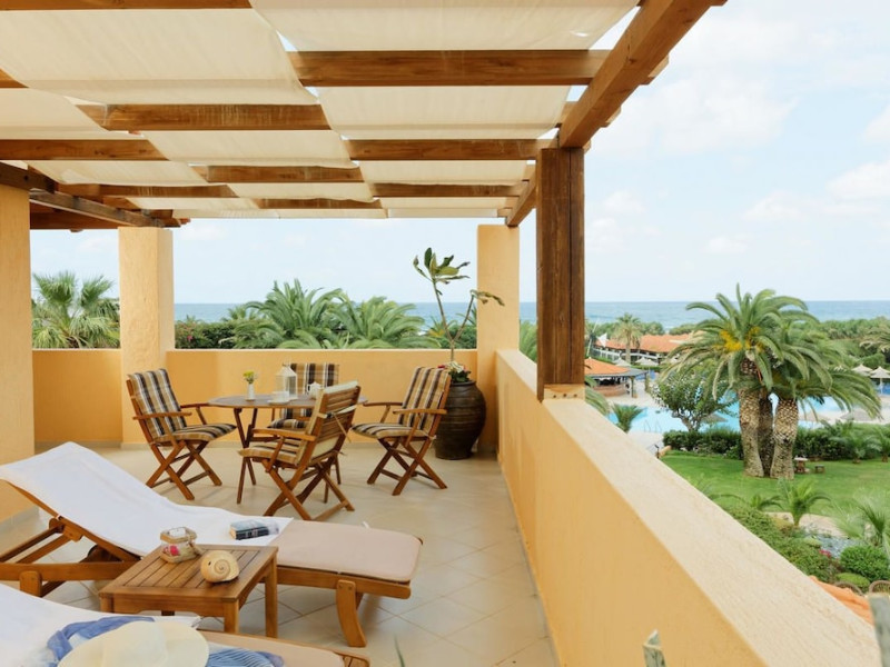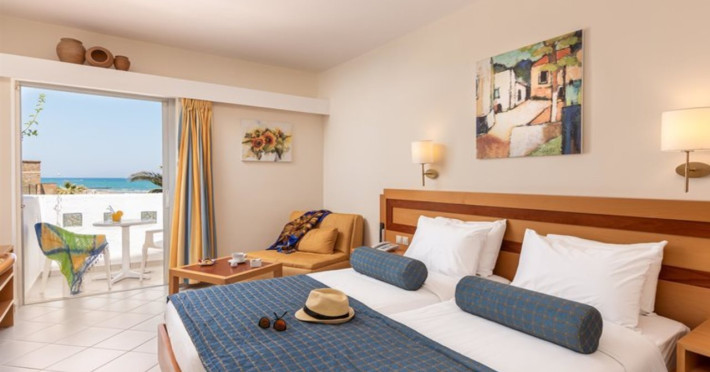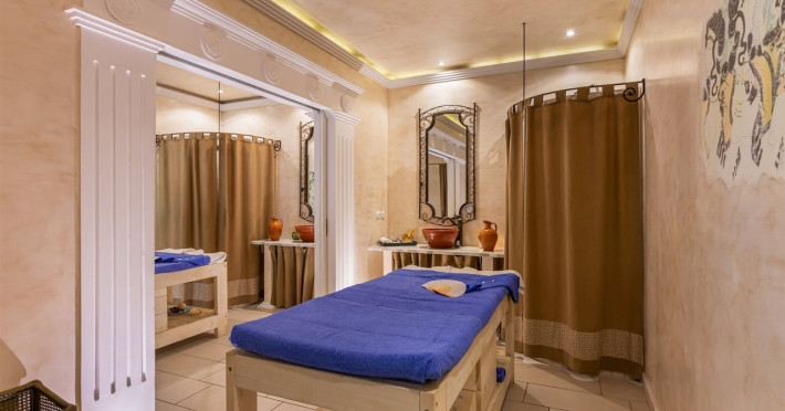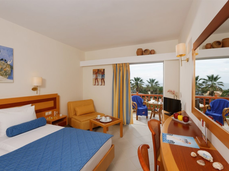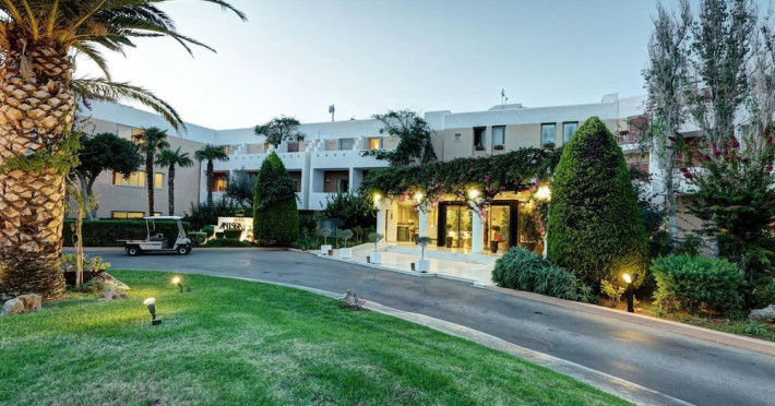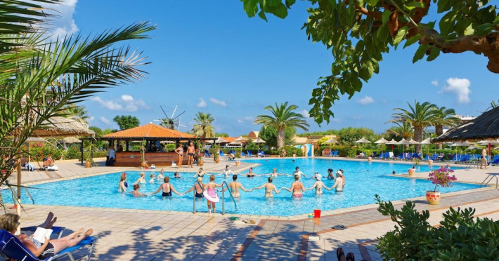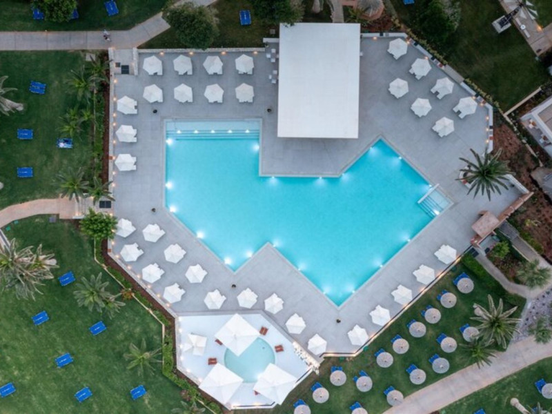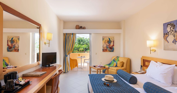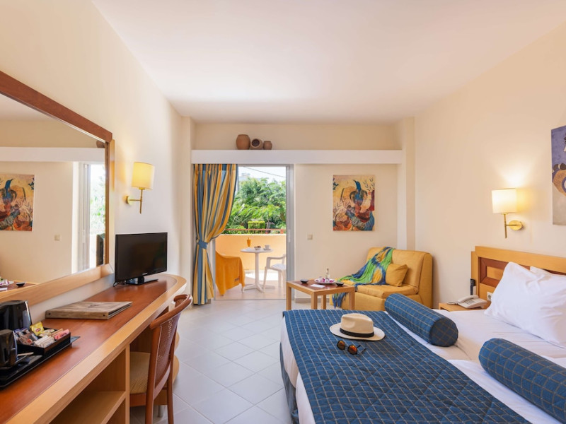 Facilities and services include free Wi-Fi, 24-hour reception, restaurant, bar, conference room, terrace, outdoor pool, indoor pool, children’s pool, playground, spa (extra charge), gym/fitness facilities, and car parking.Rooms feature a balcony or terrace and offer flat-screen TV (international satellite TV and music channels), air conditioning, Wi-Fi internet access, direct dial telephone (Extra charges), safe (extra charge), bathroom, WC, and hairdryer.**The All Inclusive-concept includes all meals (breakfast, lunch, dinner and snacks) and mealtime drinks such as soft drinks, beer, wine, water and alcoholic drinks, all of local brands. Drinks are served from morning until late evening (approx until 23.00 hrs). Opening times vary between different hotels. In certain hotels the activities program is also included.Individual pools heatable at extra charge. Minimum age for rooms with individual pools is 6+ years **Please be informed that the individual pools are heatable at extra cost.Address: 70014 Anissaras, Hersonissos, Crete, Greece.