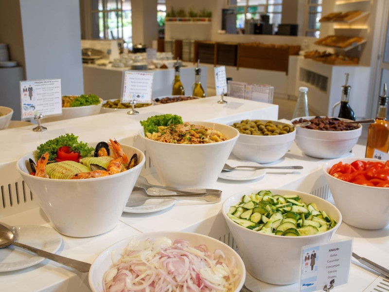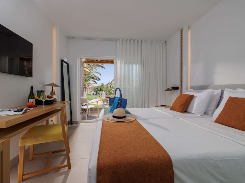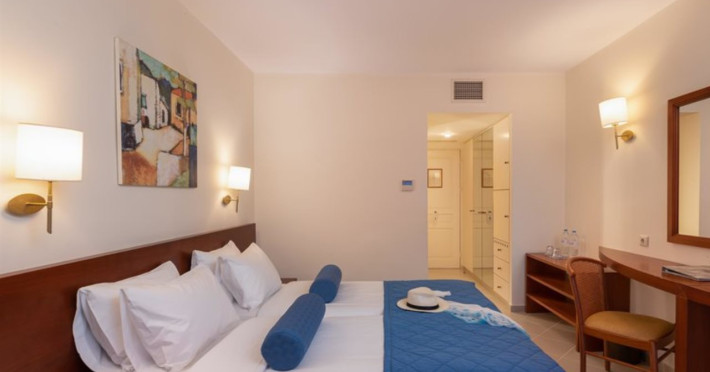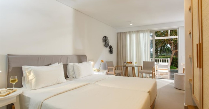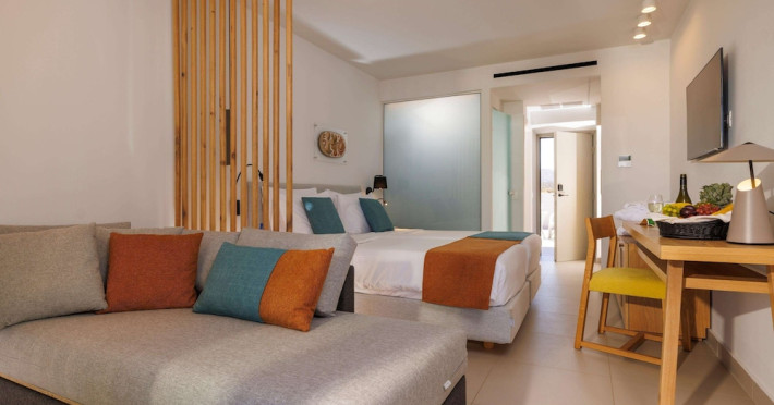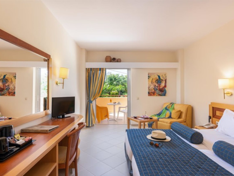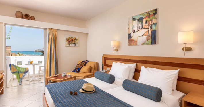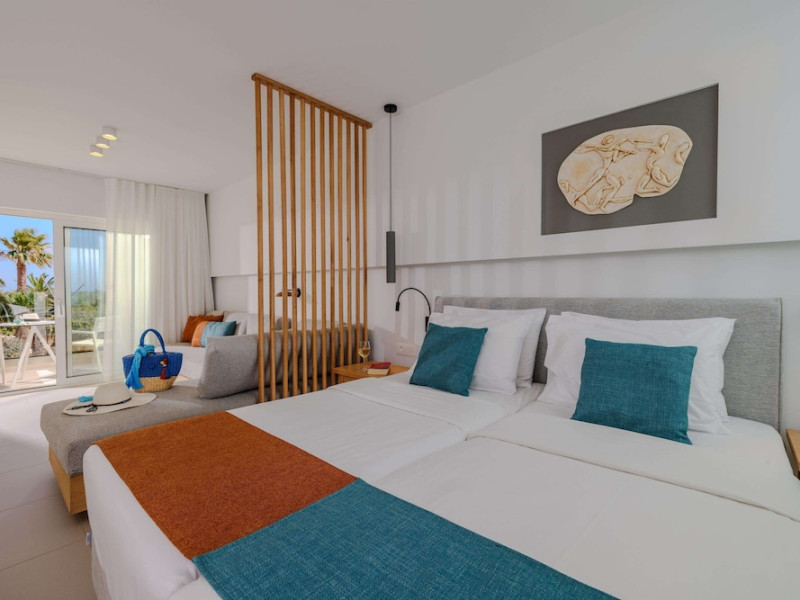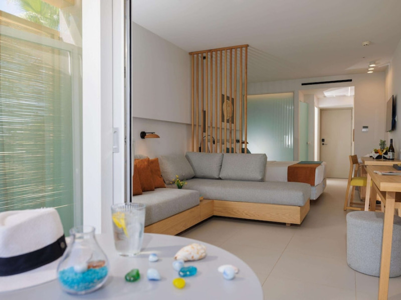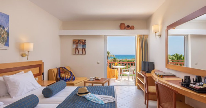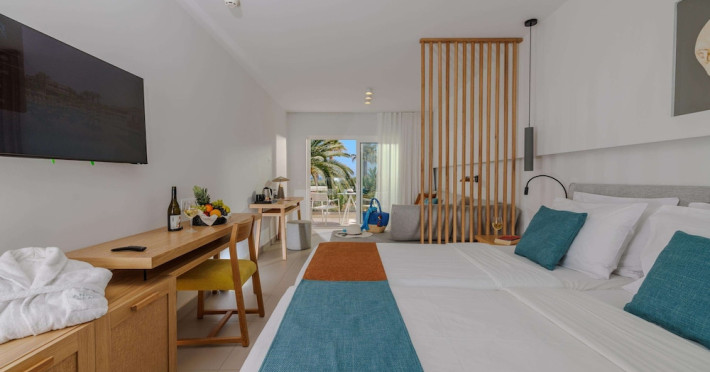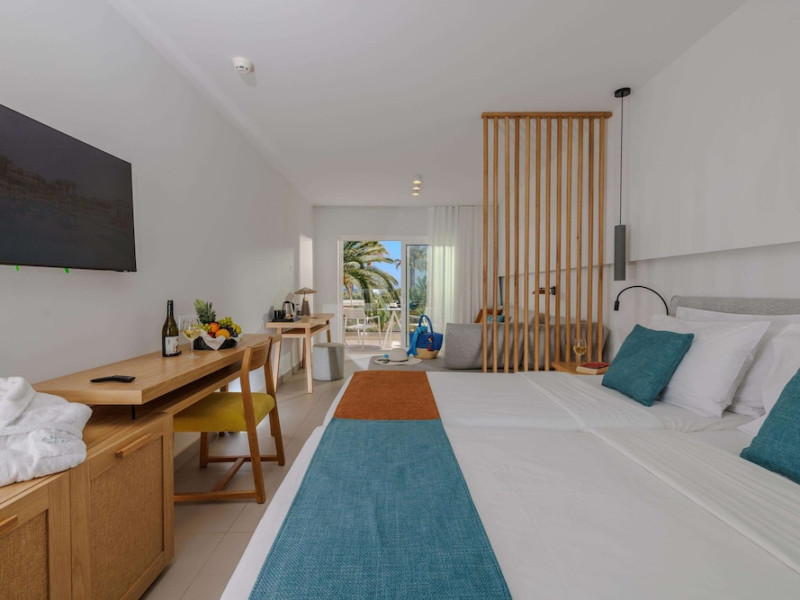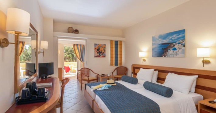 Facilities and services include free Wi-Fi, 24-hour reception, restaurant, bar, conference room, terrace, outdoor pool, indoor pool, children’s pool, playground, spa (extra charge), gym/fitness facilities, and car parking.Rooms feature a balcony or terrace and offer flat-screen TV (international satellite TV and music channels), air conditioning, Wi-Fi internet access, direct dial telephone (Extra charges), safe (extra charge), bathroom, WC, and hairdryer.**The All Inclusive-concept includes all meals (breakfast, lunch, dinner and snacks) and mealtime drinks such as soft drinks, beer, wine, water and alcoholic drinks, all of local brands. Drinks are served from morning until late evening (approx until 23.00 hrs). Opening times vary between different hotels. In certain hotels the activities program is also included.Individual pools heatable at extra charge. Minimum age for rooms with individual pools is 6+ years **Please be informed that the individual pools are heatable at extra cost.Address: 70014 Anissaras, Hersonissos, Crete, Greece.