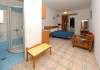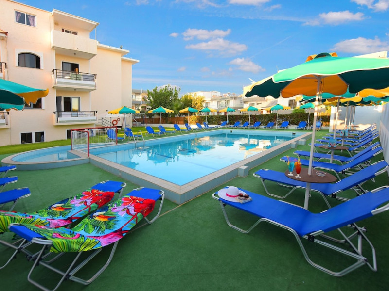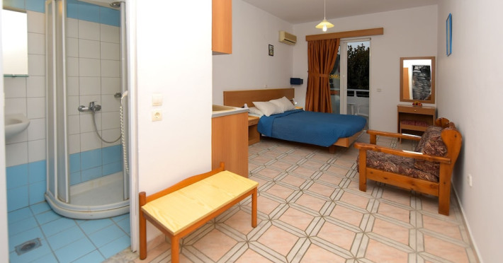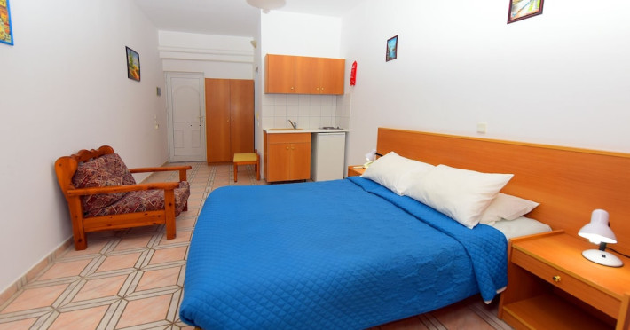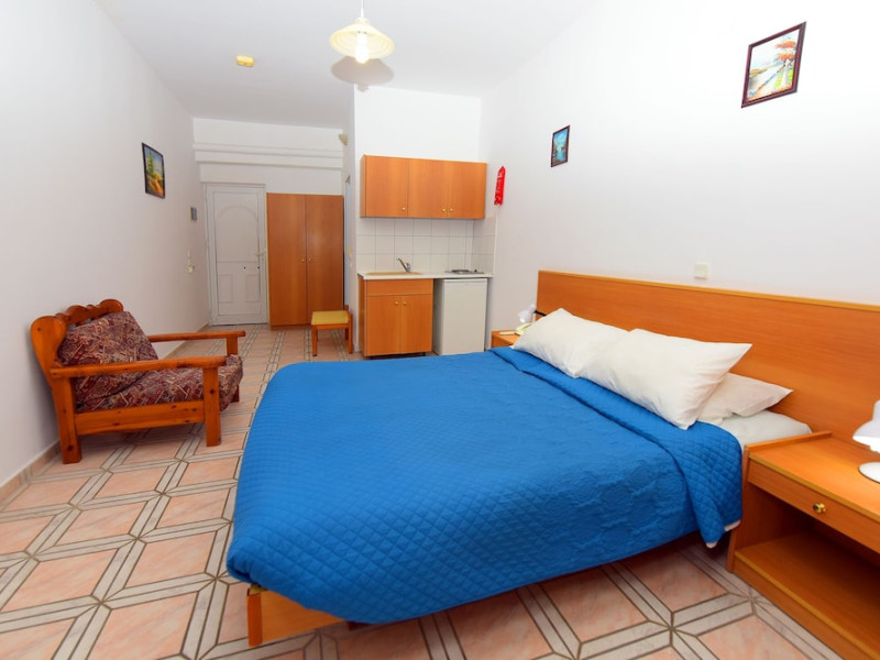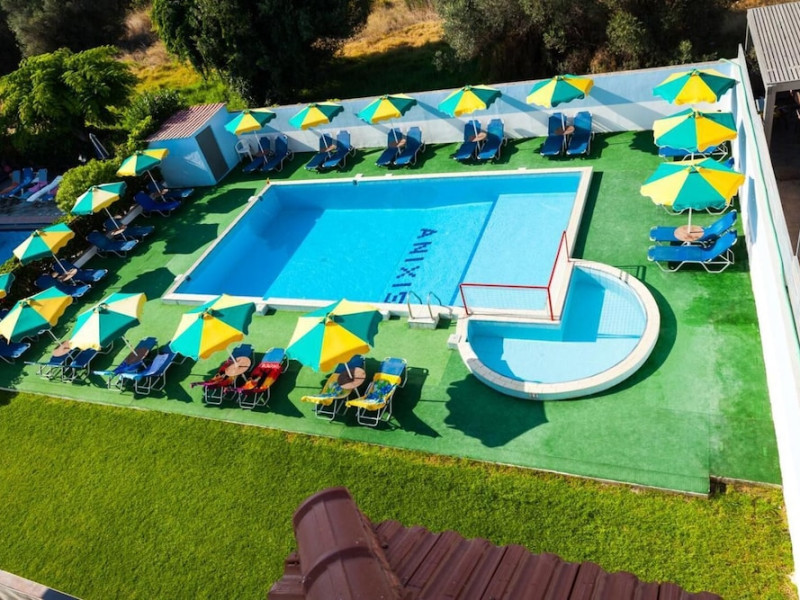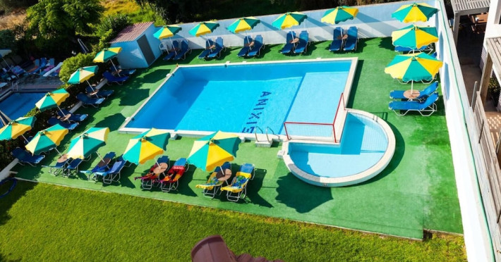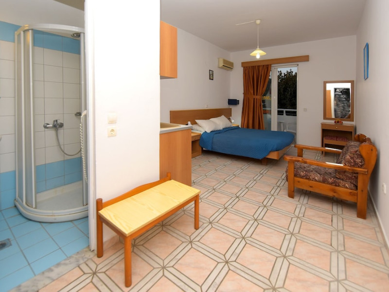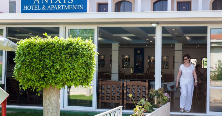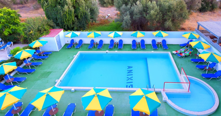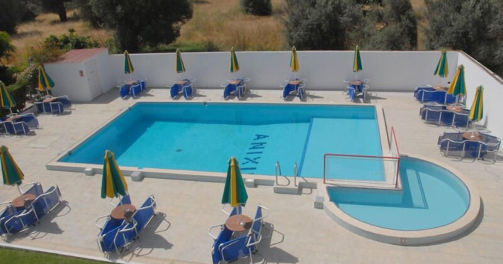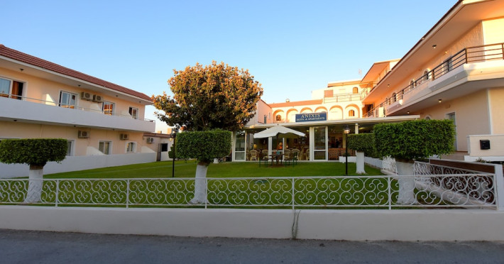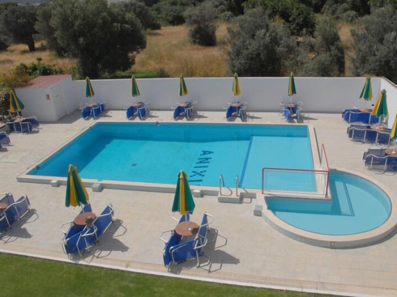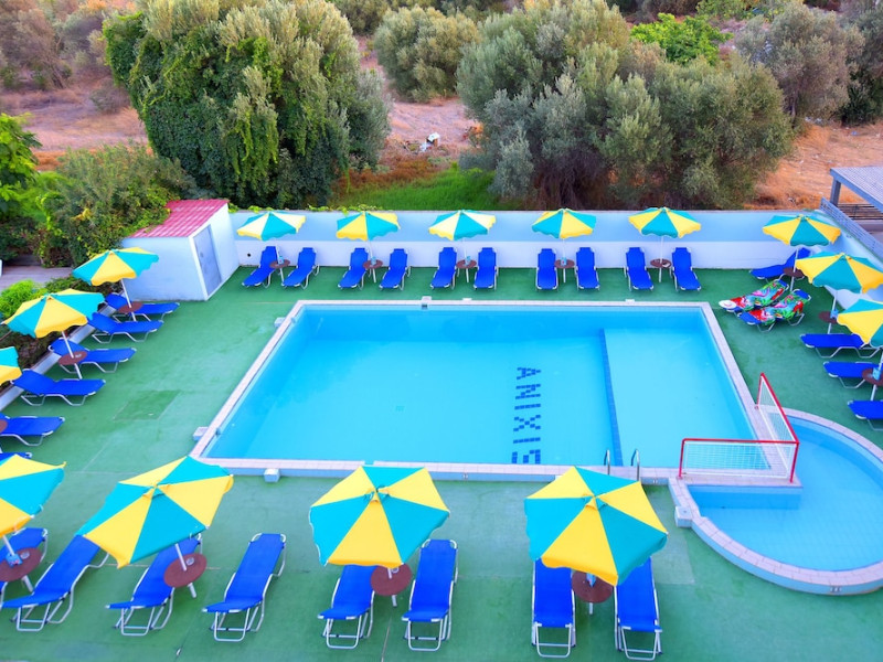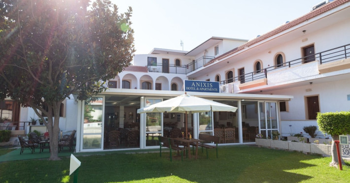 Camerele cu aer condiționat ale Hotelului Anixis, amenajat în stil cicladic, au mobilier din lemn închis la culoare și plase de țânțari. Fiecare include TV prin satelit, radio și frigider.