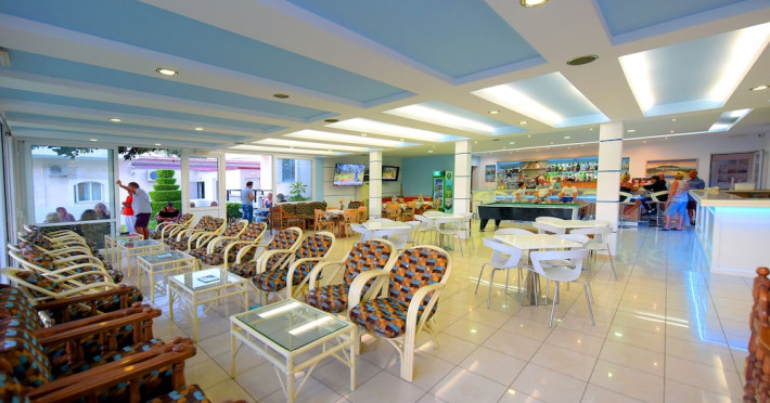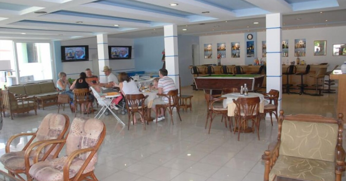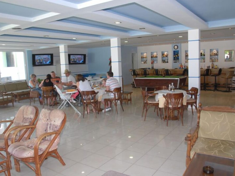 Oaspeții se pot bucura de un mic dejun tip bufet sau de o băutură la barul de pe acoperiș, care oferă vedere la mare. În livingul decorat tradițional există o mică bibliotecă.