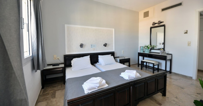 Services and facilities include 24 h air conditioning (extra charge) and WiFi, parking, daily housekeeping, lounge area, car rentalThe apartments are equipped with air conditioning (extra charge), safe box free, TV, kitchenette, fridge, mini bar, coffee / tea maker, hairdryer and telephone.Cleaning 7 times per week.Change of linen 2 times per week.Change of towels 2 times per week.Please be advised that some of the facilities mentioned above may be unavailable due to weather / seasonal conditions.Address: Palaia Ethniki Odos, Kokkini Hani, 71500 Crete, Greece.