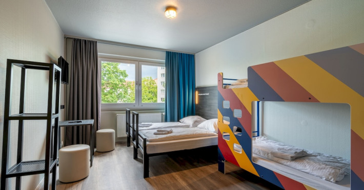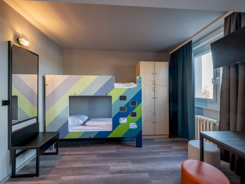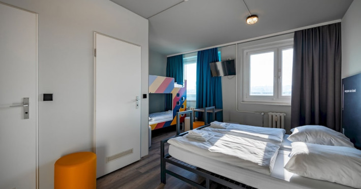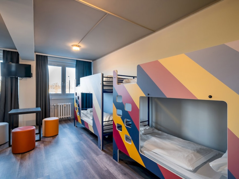 Make use of convenient amenities such as complimentary wireless internet access, an arcade/game room, and a television in a common area. Additional features at this hotel include tour/ticket assistance, a banquet hall, and a vending machine. Property Location With a stay at a&o Berlin Kolumbus in Berlin (Lichtenberg), you'll be within a 15-minute drive of Alexanderplatz and Berlin TV Tower. This hotel is 6.9 mi (11.1 km) from Potsdamer Platz and 6.2 mi (10 km) from Brandenburg Gate.Distances are displayed to the nearest 0.1 mile and kilometer. Bim and Boom Children's Playground - 3.3 km / 2.1 mi Velodrom - 4 km / 2.5 mi Tierpark Berlin - 4.8 km / 3 mi Simon-Dach-Strasse - 4.9 km / 3.1 mi Boxhagener Platz - 5.7 km / 3.6 mi Torstrasse - 6.6 km / 4.1 mi Oberbaum Bridge - 6.9 km / 4.3 mi Alexanderplatz - 7 km / 4.4 mi East Side Gallery - 7 km / 4.4 mi Schonhauser Allee Arkaden - 7.2 km / 4.5 mi Uber Arena - 7.6 km / 4.7 mi Hackescher Markt - 7.7 km / 4.8 mi Mauerpark - 7.7 km / 4.8 mi DDR Museum - 7.8 km / 4.9 mi Oranienburger Strasse - 7.8 km / 4.9 mi The nearest major airport is Berlin (BER-Brandenburg) - 28 km / 17.4 mi Rooms Make yourself at home in one of the 214 guestrooms. Complimentary wireless internet access is available to keep you connected. Bathrooms have showers and hair dryers. Conveniences include desks and blackout drapes/curtains, and housekeeping is provided daily. Dining Grab a bite from the snack bar/deli serving guests of a&o Berlin Kolumbus. Wrap up your day with a drink at the bar/lounge. Buffet breakfasts are served on weekdays from 7:00 AM to 10:00 AM and on weekends from 7:00 AM to 11:00 AM for a fee. Business, Other Amenities Featured amenities include complimentary newspapers in the lobby, a 24-hour front desk, and multilingual staff. Event facilities at this hotel consist of conference space and meeting rooms. Self parking (subject to charges) is available onsite. Check In: 3:00 PM Check Out: 10:00 AM
