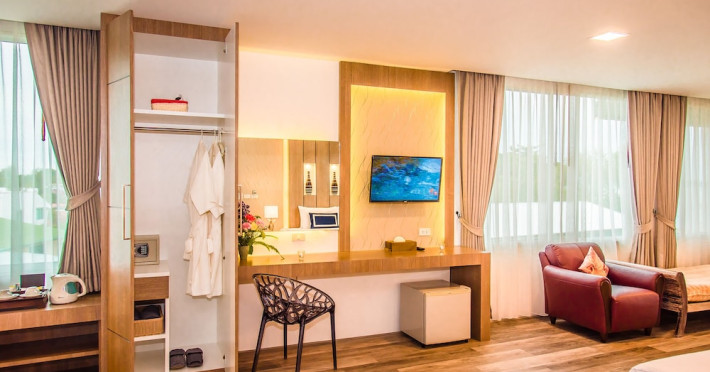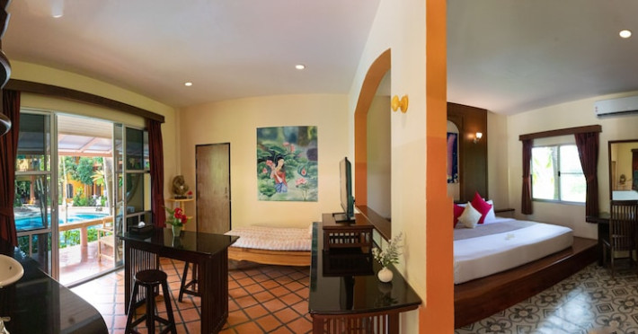 Double room with 1 extra bed can be used by 2 adults and 2 children (or 3 adults). The Aochalong Villa Resort & Spa is a hotel.