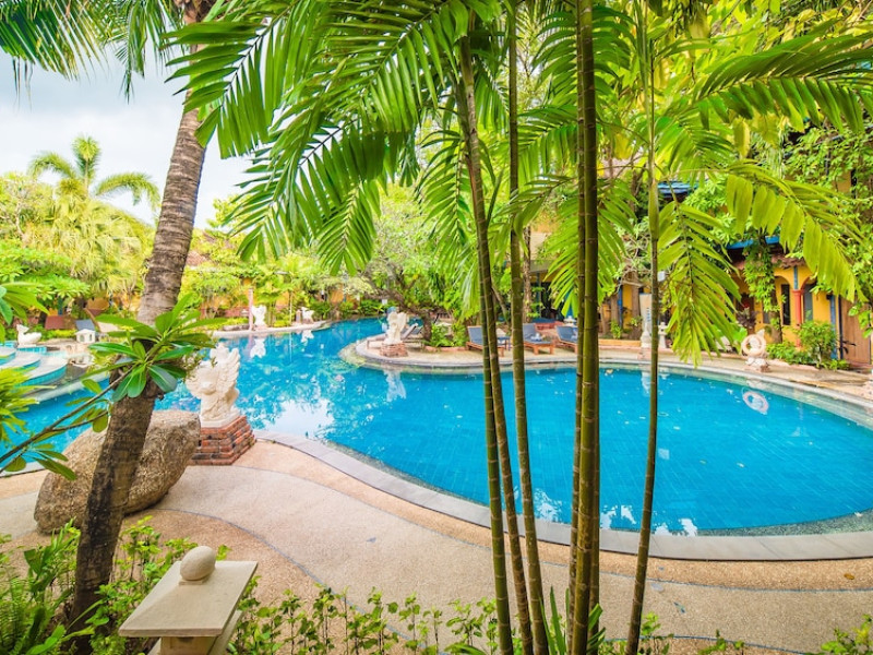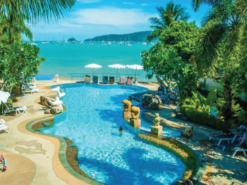 Located on Chalong Bay in Phuket, Thailand, the 4-star Aochalong Villa Resort & Spa offers a relaxing escape with modern amenities. The resort features Asian-inspired rooms with balconies and views of the garden, pool, or sea. Guests can enjoy an infinity pool overlooking the sea, traditional Thai massage services, and complimentary Wi-Fi. Rooms are equipped with air conditioning, refrigerators, and satellite programming. The private bathrooms have showers, complimentary toiletries, and hair dryers. Dining options include a beachfront restaurant serving seafood, Thai, and Western dishes, as well as 24-hour room service. A bar/lounge is also available. The hotel offers a complimentary beach shuttle, tour/ticket assistance, dry cleaning/laundry services, a 24-hour front desk, and luggage storage. Airport shuttle service is available for a surcharge. The hotel is a short drive from Chalong Pier and Phuket Town.