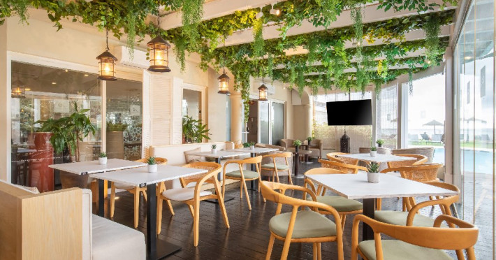 Doua restaurante si doua baruri cu vedere spre plaja, unde poti lua pranz, cina sau bauturi.