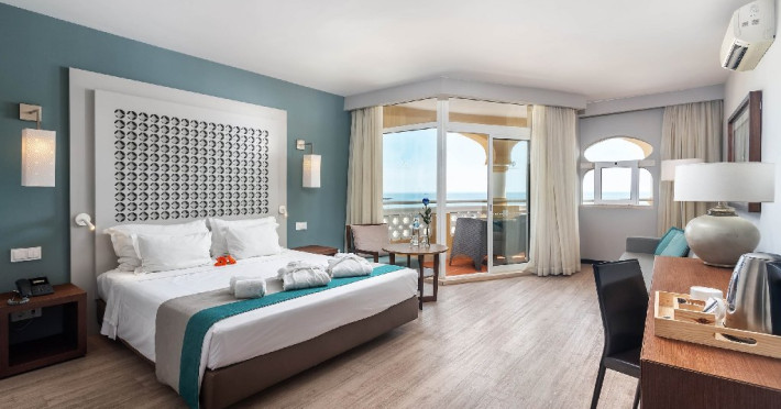 Hotelul ofera mai multe tipuri de camere: Frontal Sea View Premium, Frontal Sea View, Side Sea View, dar si Suite.