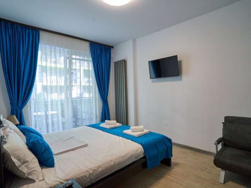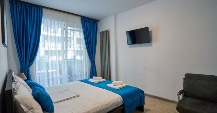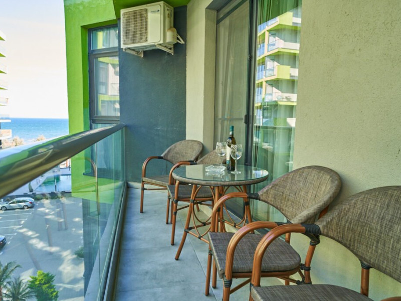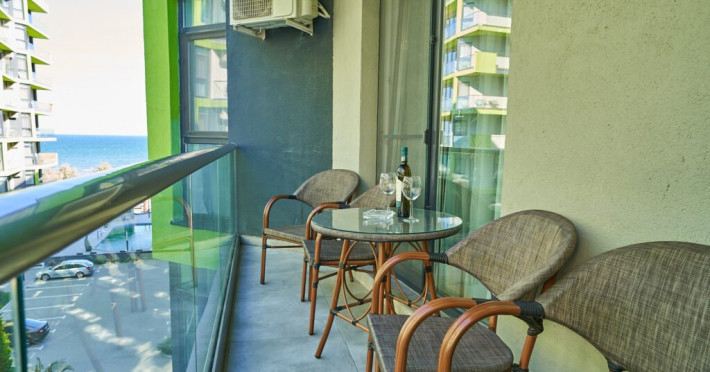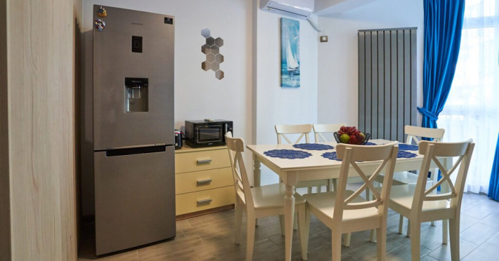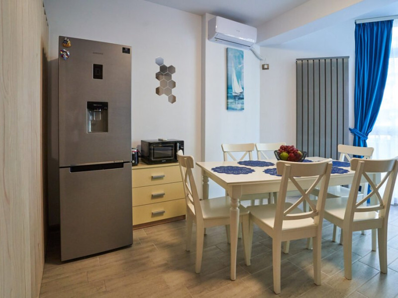Bianca Residence 3 cu o suprafata de 60 mp se compune din living open space cu canapea extensibila si bucatarie (dotata cu frigider, cuptor, plita, microunde, prajitor de paine, aparat de cafea, fierbator), dormitor matrimonial separat cu usa, baie cu cabina de dus si masina de spalat, balcon cu vedere laterala la mare. Apartamentul dispune de wi fi, aer conditionat in living si tv in ambele camere. Adresa: Str. Prelungirea D13, nr 6, bloc M, etaj 2, ap 37, Alezzi Beach Resort.