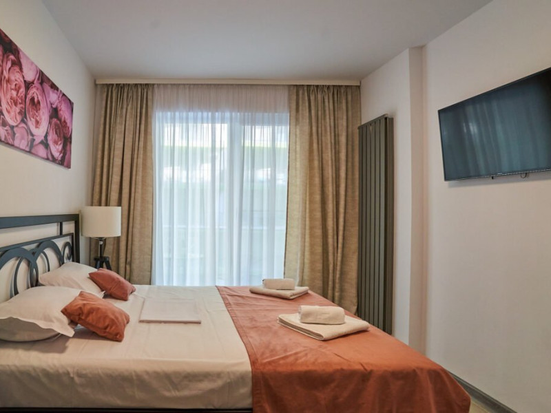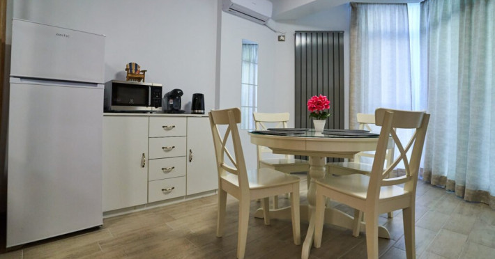 Dotari camere Bianca Residence 1 cu o suprafata de 55 mp se compune din living open space cu canapea extensibila si bucatarie (dotata cu frigider, cuptor, plita, microunde, prajitor de paine, aparat de cafea, fierbator), dormitor matrimonial separat cu usa, baie cu cabina de dus si masina de spalat, balcon cu vedere laterala la mare. Apartamentul dispune de wi fi, aer conditionat in living si tv in ambele camere. Adresa: Str. Prelungirea D13, nr 6, bloc K, etaj 3, ap 55, Alezzi Beach Resort. Bianca Residence 2 cu o suprafata de 60mp se compune din living open space cu canapea extensibila si bucatarie (dotata cu frigider, cuptor, plita, microunde, prajitor de paine, aparat de cafea, fierbator), dormitor matrimonial separat cu usa, baie cu cabina de dus si masina de spalat, balcon cu vedere laterala la mare. Apartamentul dispune de wi fi, aer conditionat in living si tv in ambele camere. Adresa: Str. Prelungirea D13, nr 6, bloc K, etaj 3, ap 55, Alezzi Beach Resort.