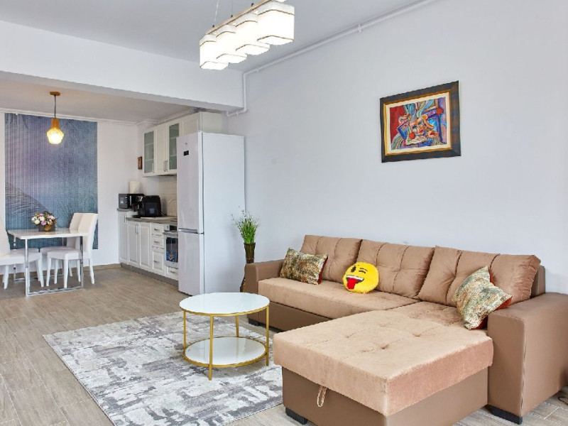 Dotari si servicii: Apartamente cu living si dormitor, wifi gratuit, bloc nou deservit de lift.