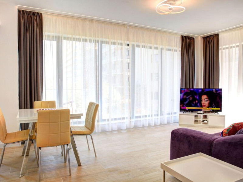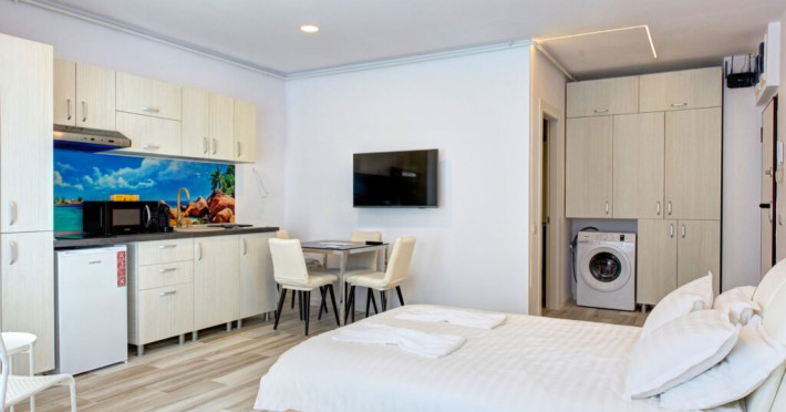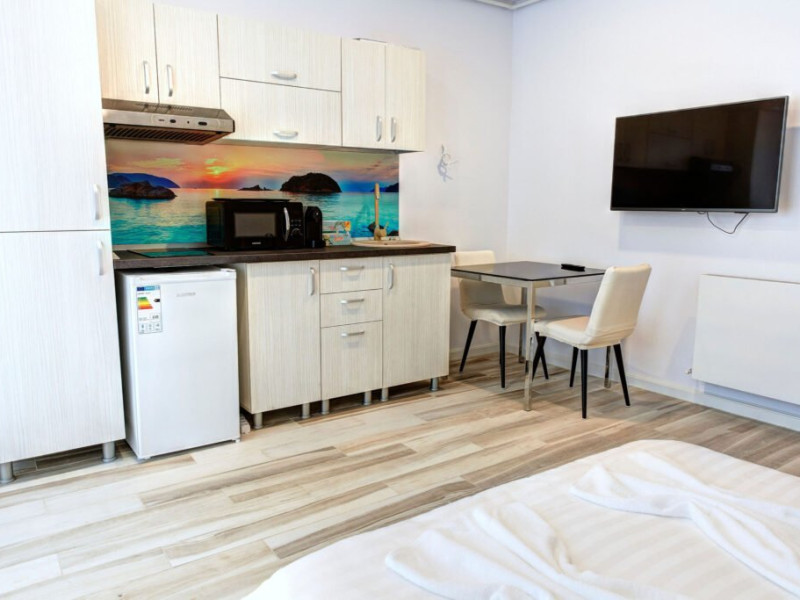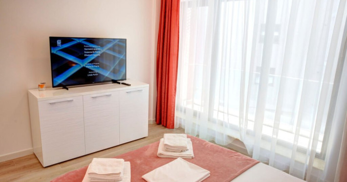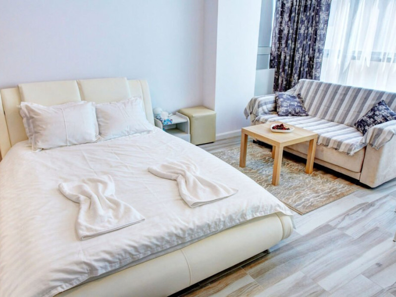 Dotari si servicii Internet, patut bebe contra-cost. Cazarea se face in sistem self check in, pe baza de cod. Parcarea in jurul apartamentelor La Butoaie este publica. Se accepta cazarea cu animale de companie de talie mica (doar un animal de companie/camera), contra cost pentru o taxa de 100 lei/camera/sejur. Se achita la cazare. Dotari camere Apartamentul Bel Air ofera un open space cu canapea extensibila si dormitor cu pat matrimonial, separat cu usa, bucatarie echipata (cuptor, plita, hota, frigider, prajitor, fierbator, filtru de cafea), baie cu dus modern walk in si uscator de par, balcon mobilat. Apartamentul dispune de wi fi, centrala proprie, aer conditionat in living, tv in ambele camere. Suprafata 50 mp. Adresa: Mamaia Nord, nr 183-187, bloc C1, etaj 2. Studioul Bel Air Lotus ofera un open space dotat cu pat matrimonial, bucatarie echipata (plita, hota, microunde, frigider, aparat de cafea, vesela), baie cu dus walk in si uscator de par, balcon, aer conditionat, centrala proprie, wi fi, tv. Suprafata 30 mp. Adresa: Mamaia Nord, nr 183-187, bloc C1, parter. Studioul Bel Air Paradise dispune de un open space dotat cu pat matrimonial si o canapea extensibila, bucatarie echipata (plita, hota, microunde, frigider, aparat de cafea, vesela), baie cu dus walk in si uscator de par, balcon, aer conditionat, centrala proprie, wi fi, tv. Suprafata 30 mp. Adresa : Mamaia Nord, nr 183-187, bloc C1, etaj 4. Capacitate maxima 4 persoane