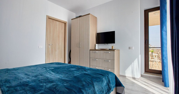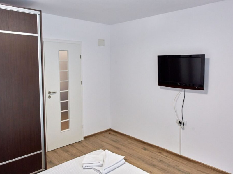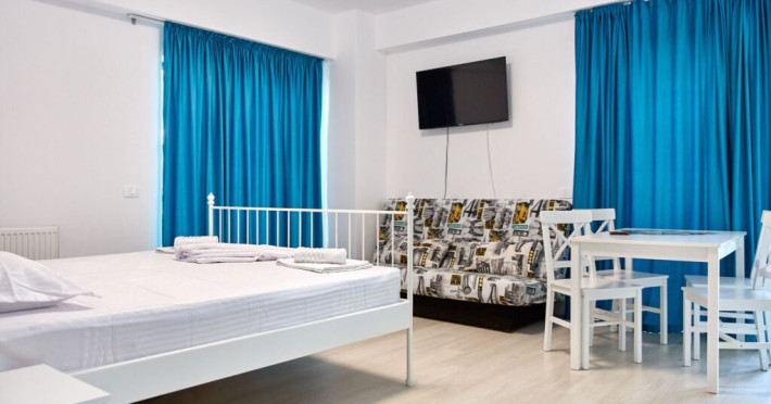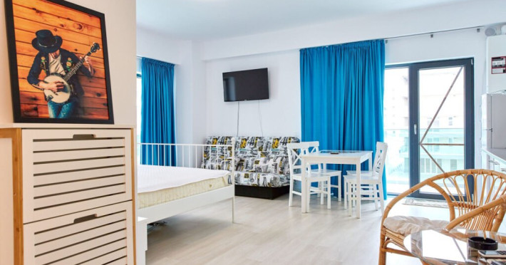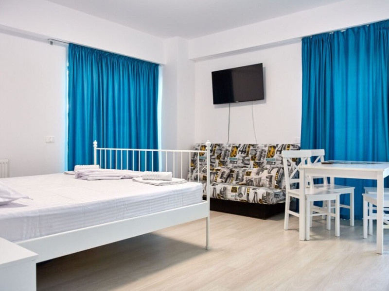 Dotari camere Apartament Ires cu o suprafata de 72 mp este compus din 2 dormitoare, unul cu pat matrimonial iar cel de-al doilea are un pat matrimonial si unul de o persoana, living cu canapea extensibila, bucatarie dotata cu plita de gatit , cuptor cu microunde, prajitor de paine, aparat de cafea, frigider , vesela, TV, wi-fi, aer conditionat, masina de spalat, baie cu cabina de dus.Adresa: str Promenada, nr 85. Apartament Blue Promenada cu o suprafata de 55 mp este compus dintr-un dormitor cu pat matrimonial, living cu canapea extensibila, bucatarie dotata cu plita de gatit , cuptor cu microunde, aparat de cafea, frigider , vesela, TV, wi-fi, aer conditionat, baie cu cabina de dus si masina de spalat, balcon cu vedere frontala la mare. Adresa : strada Promenada 85 bis , et. 4 Studio Rif cu o suprafata de 36 mp are in dotare 1 pat matrimonial si canapea extensibila, bucatarie dotata cu plita de gatit ,cuptor, aparat de cafea, frigider , vesela, TV, wi-fi, aer conditionat, baie cu cabina de dus si balcon. Adresa : strada D 25 , et. 2. Apartament Mystic Promenada cu o suprafata de 50 mp este compus dintr-un dormitor cu pat matrimonial, living cu canapea extensibila, bucatarie dotata cu plita de gatit , cuptor cu microunde, aparat de cafea, frigider , vesela, TV, wi-fi, aer conditionat, baie cu cada, masina de spalat, curte exterioara. Adresa : strada D11 , nr.12.
